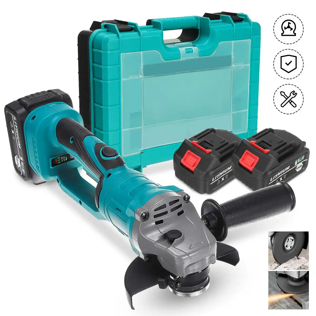 Беспроводная бесщеточная угловая шлифовальная машина, 125 мм, электрический шлифовальный станок сделай сам, электроинструмент для деревообработки с 2 батареями и пластиковой коробкой