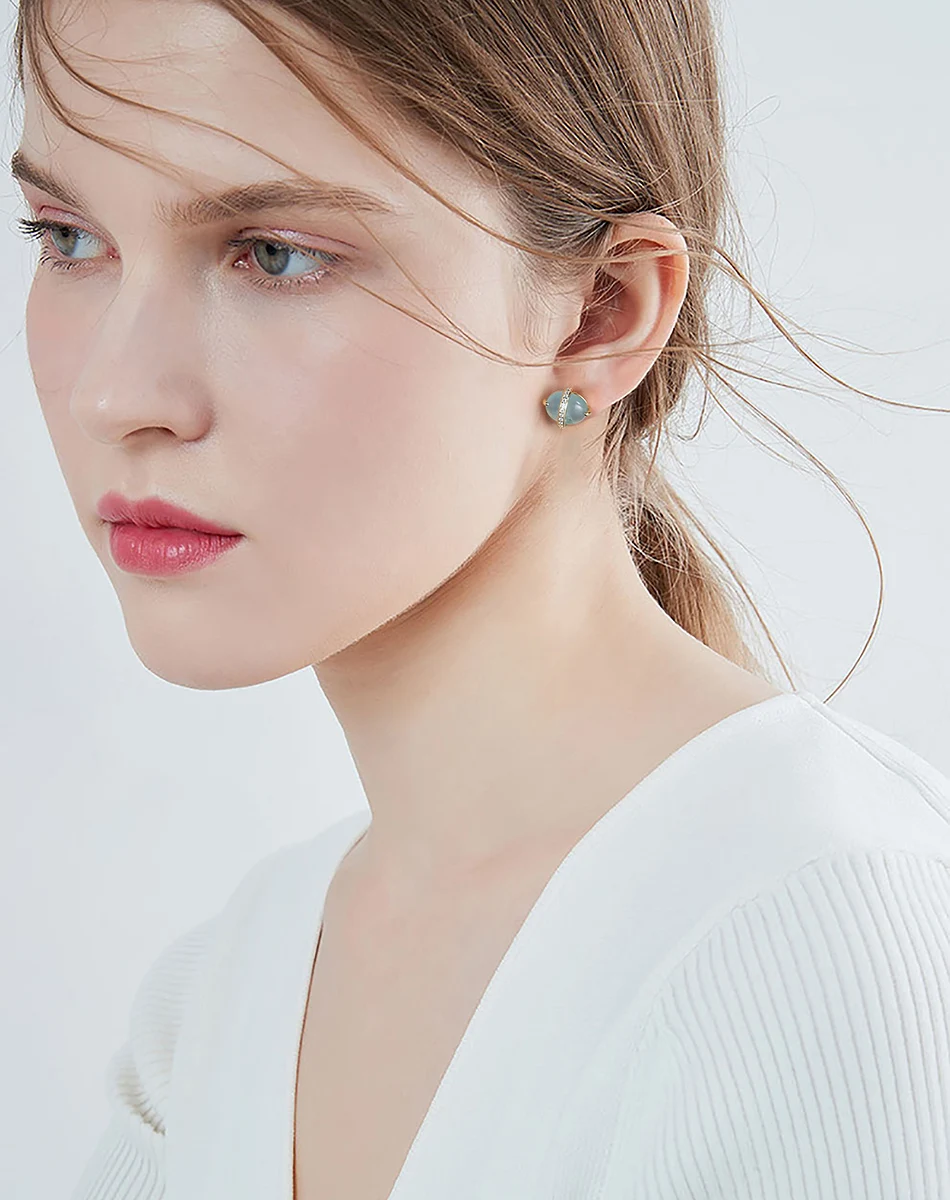 Женские серьги-гвоздики из серебра 925 пробы с натуральным аквамарином
