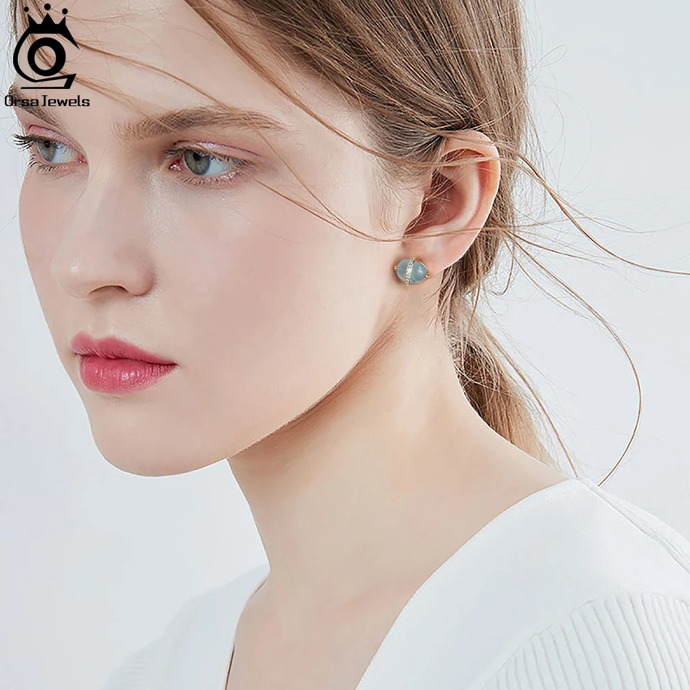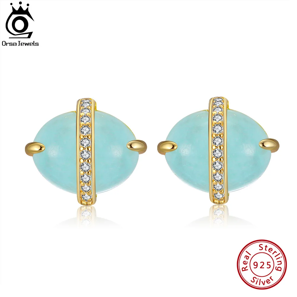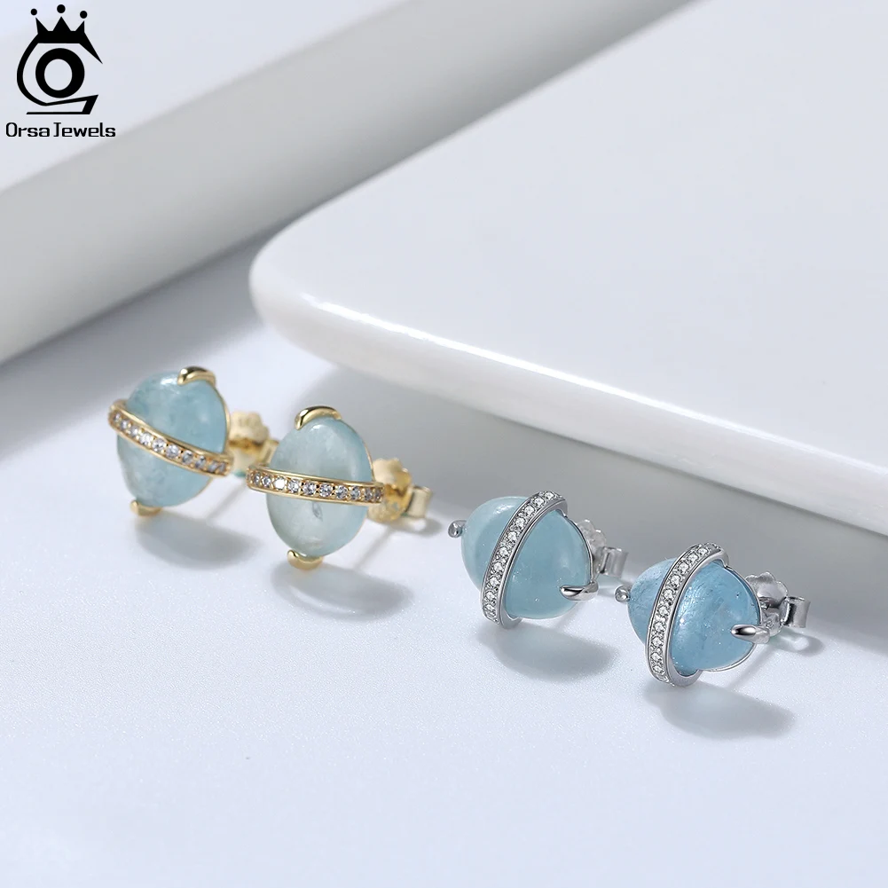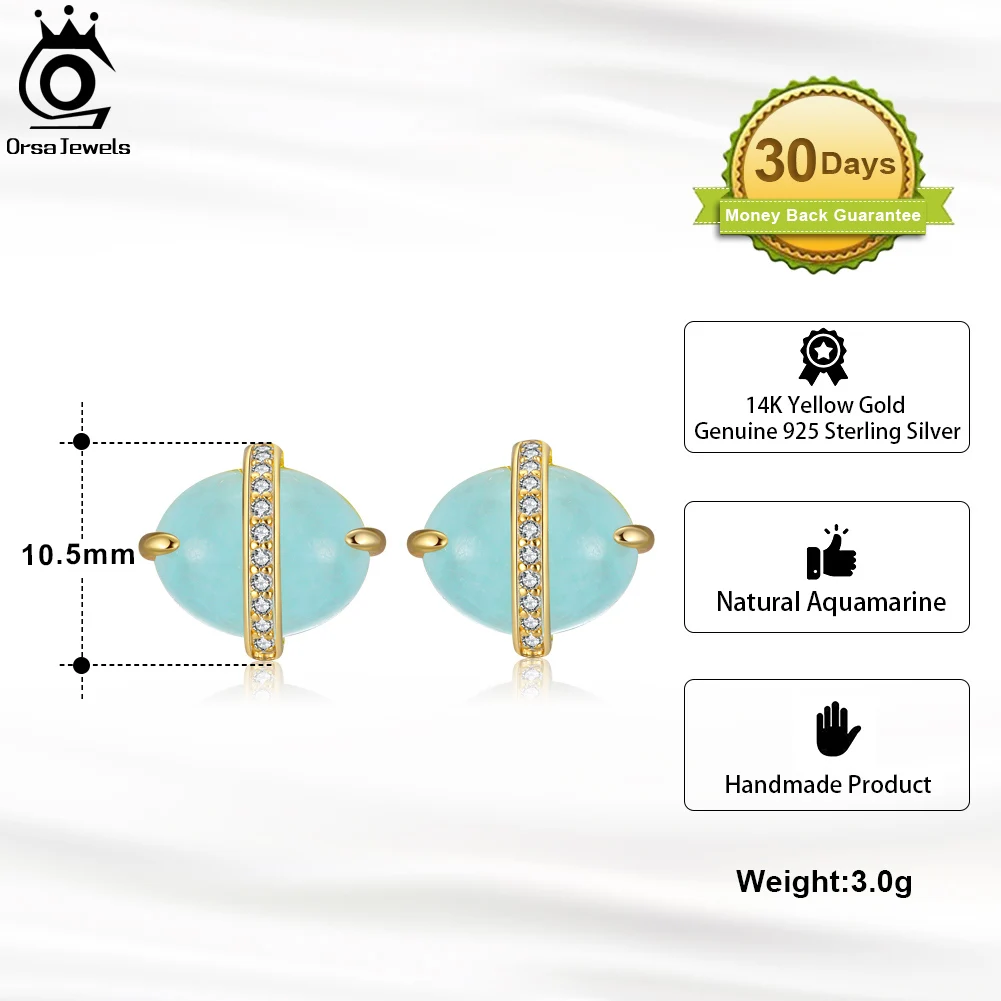 ORSA JEWELS изысканные овальные натуральные аквамариновые серьги-гвоздики из твердого стерлингового серебра 925 пробы для женщин ювелирные изделия GME04