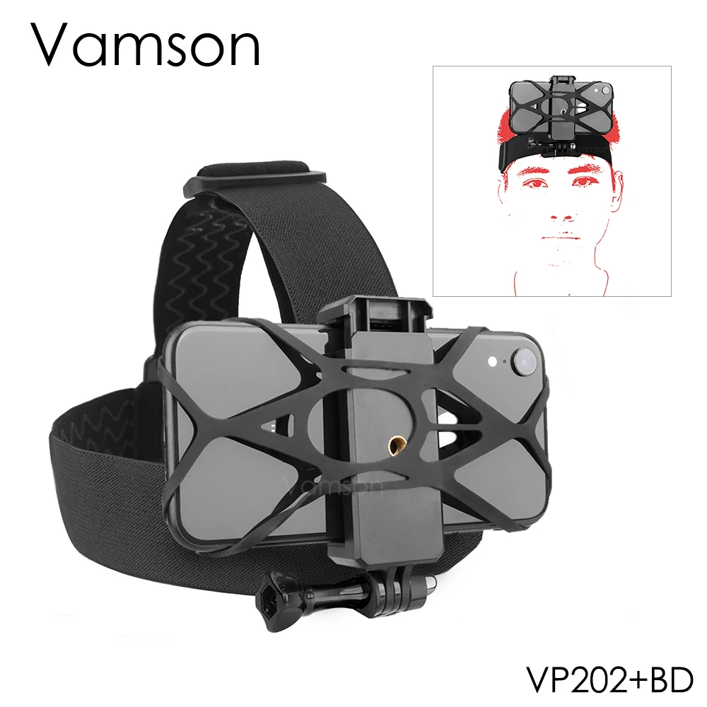 Регулируемый ремень на голову Vamson, универсальный держатель для телефона, фиксирующее крепление для Gopro Hero 10, 9, 8, 7, 6, 5, для iPhone, Xiaomi, Samsung, Huawei