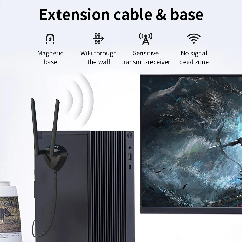 Расширьте дизайн антенны, чтобы избежать всех видов проблем с блокировкой сигнала. Основание антенны имеет функцию магнитного притяжения и может быть прикреплено к корпусу компьютера; Антенна Свободно вращается и пользуется высокоскоростными сигналами