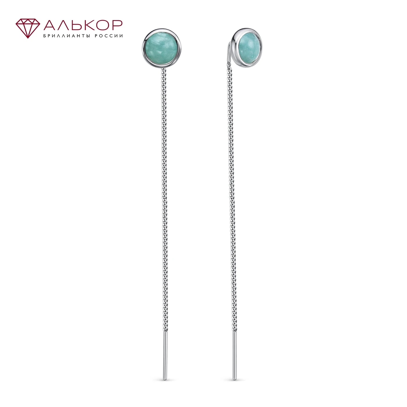 Серьги протяжки (продевки) из родированного серебра c амазонитами АЛЬКОР. Быстрая доставка с ювелирной фабрики в России