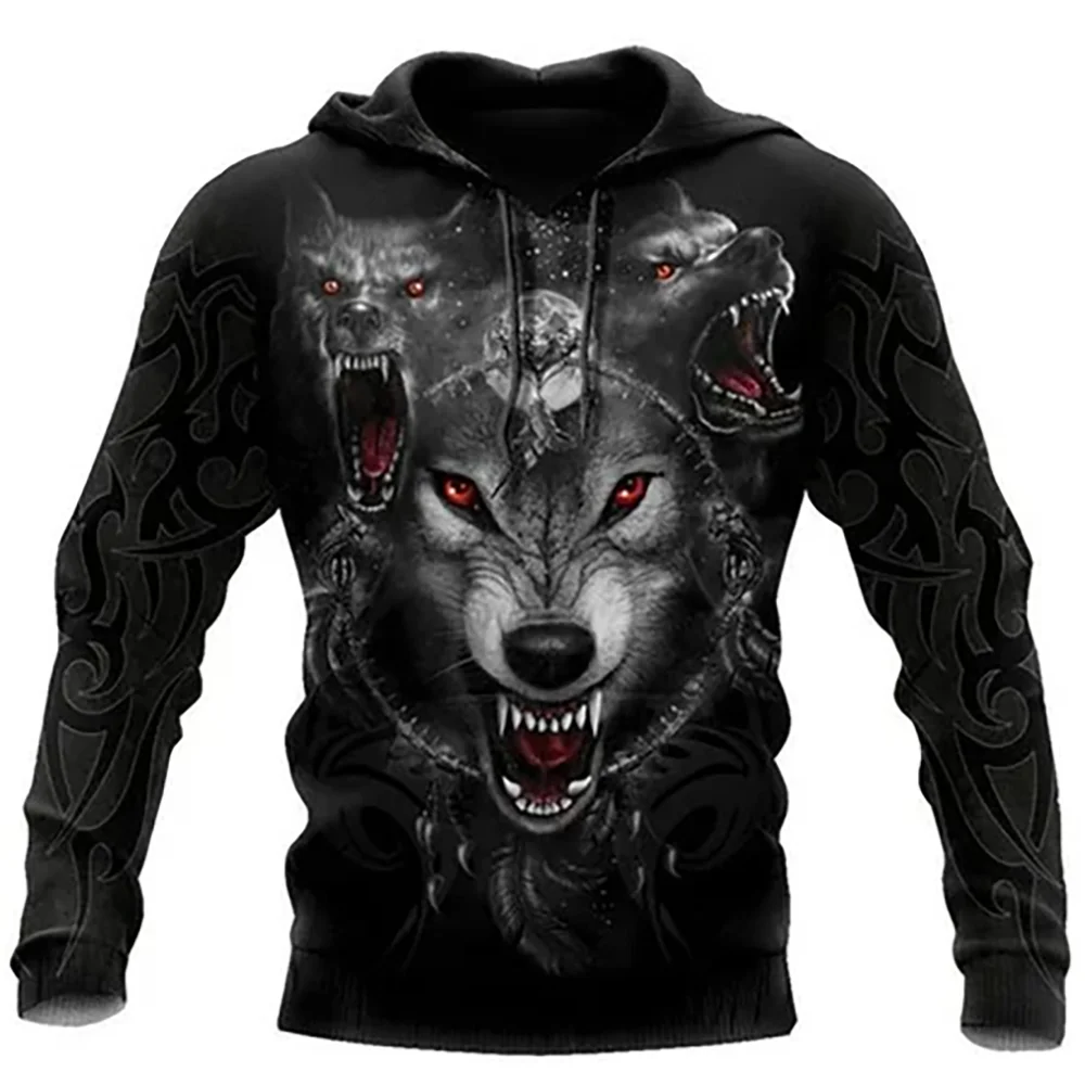 Толстовка мужская с 3D-принтом татуировки волка, Свитшот унисекс, у...