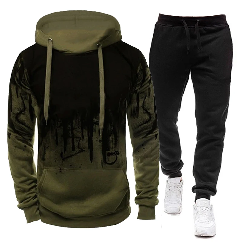 Мужской модный Камуфляжный пуловер с принтом, Толстовка и спортивные брюки, спортивный костюм, костюмы для бега
