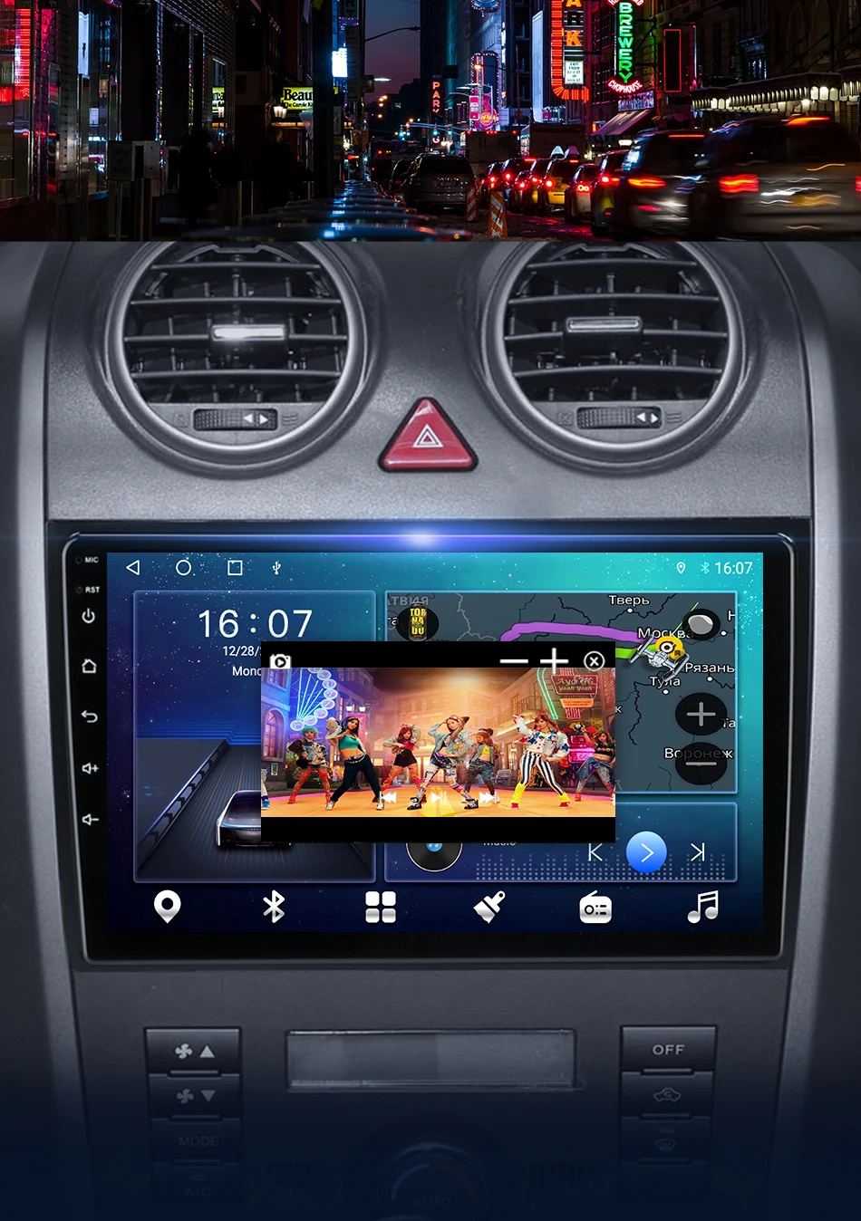 Поддержка видео и приложения DVRПлавающего окна, настроить положение дисплея и сделать ваш опыт вождения полон прохладных цветов.