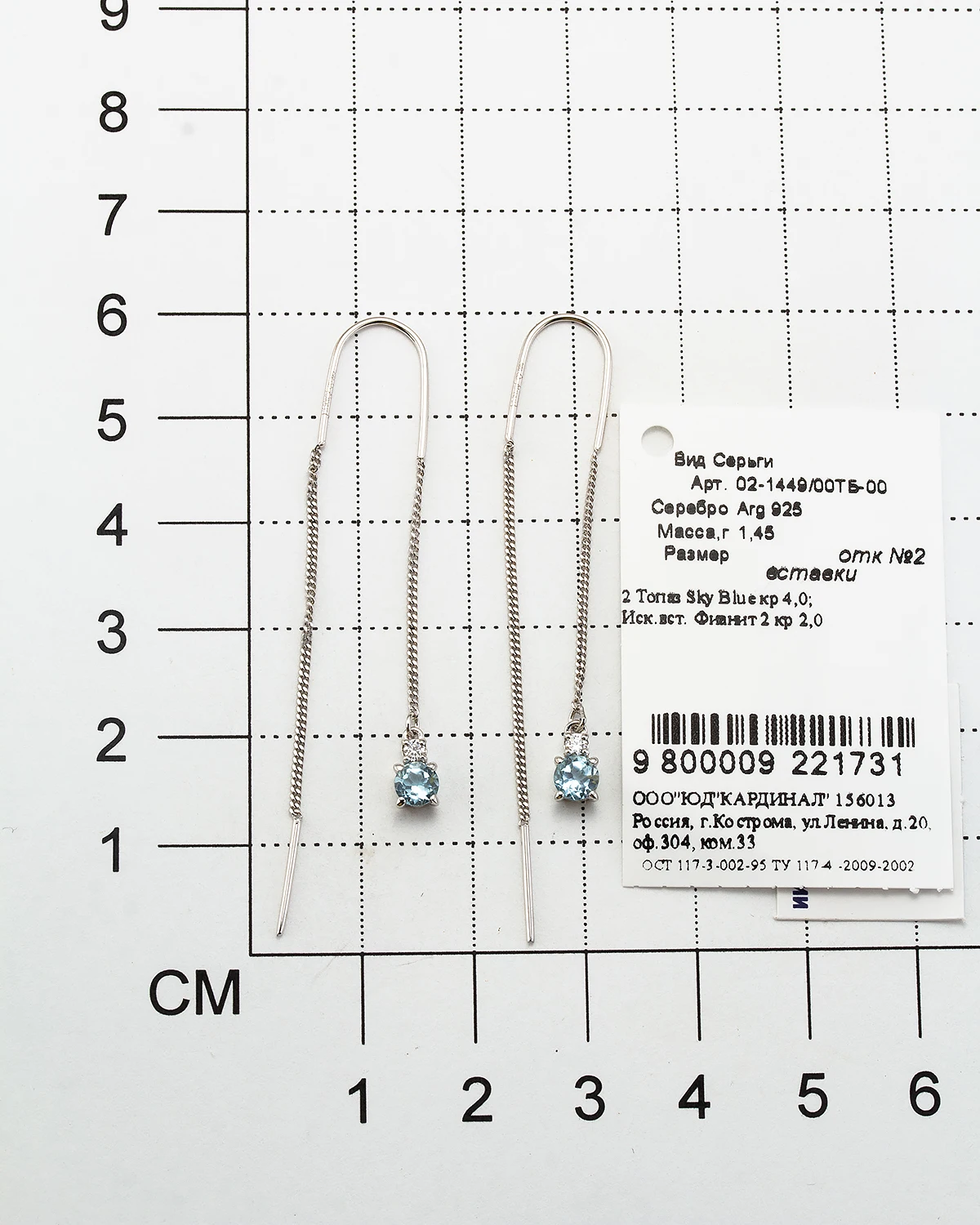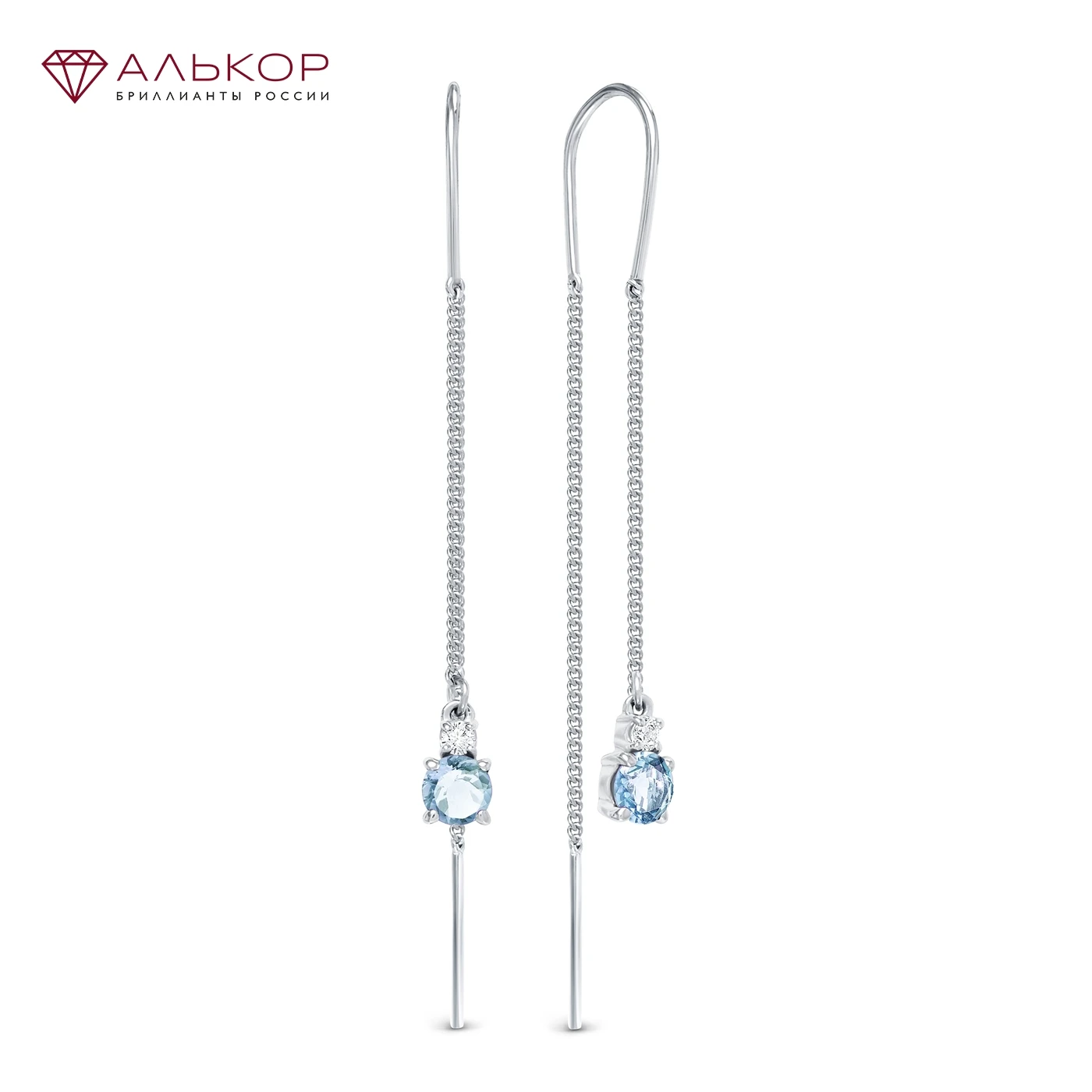 О товаре Серьги протяжки (продевки) из родированного серебра c топазами sky blue и кристаллами АЛЬКОР. Быстрая доставка с ювелирной фабрики в России. Мы покрываем серебро гипоаллергенным слоем родия толщиной 0,4 мкм, чтобы драгоценный металл получил благородный платиновый блеск и не потемнел со временем. Высота изделия: 57,7 мм. Ширина изделия: 4,2 мм.