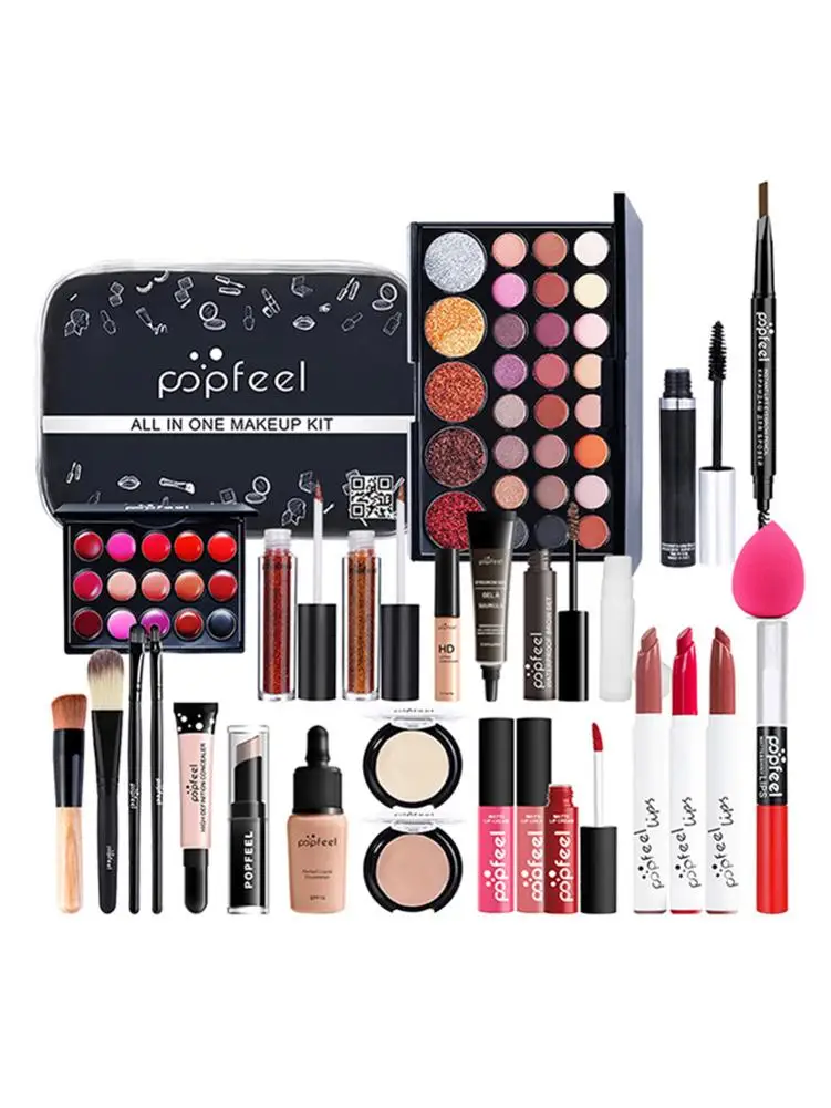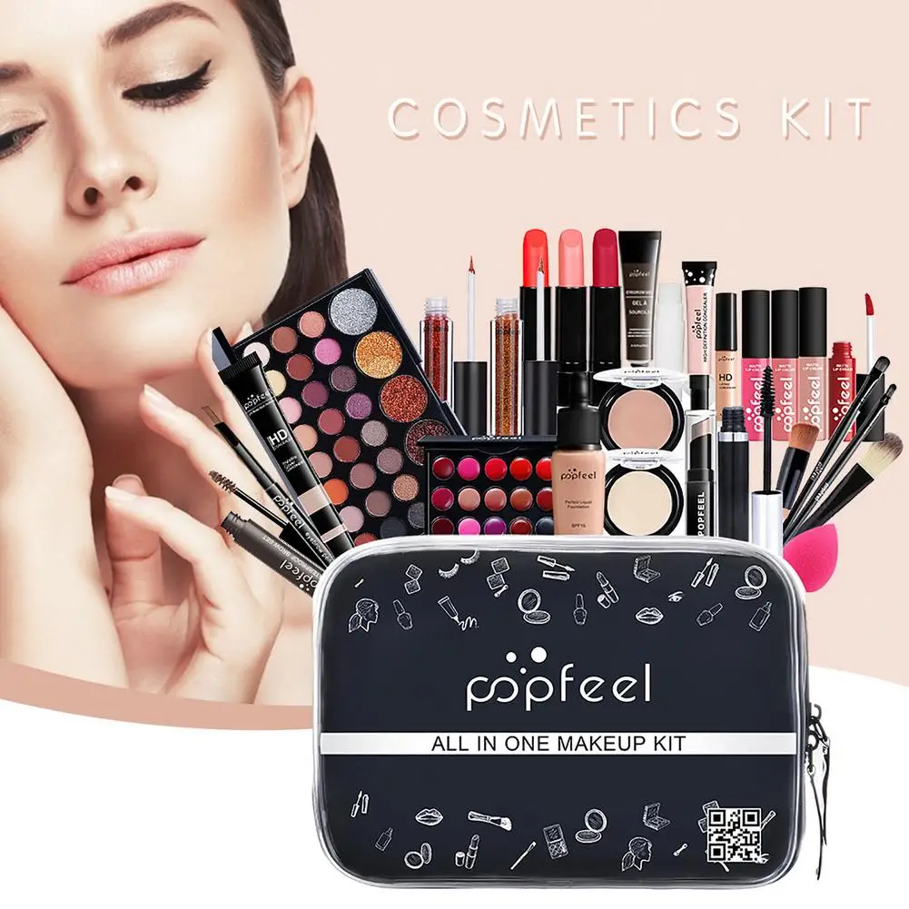 27 шт.компл. набор для макияжа Все в одном (тени, блеск для губ Помады кисти для макияжа для бровей консилера) с сумкой для макияжа