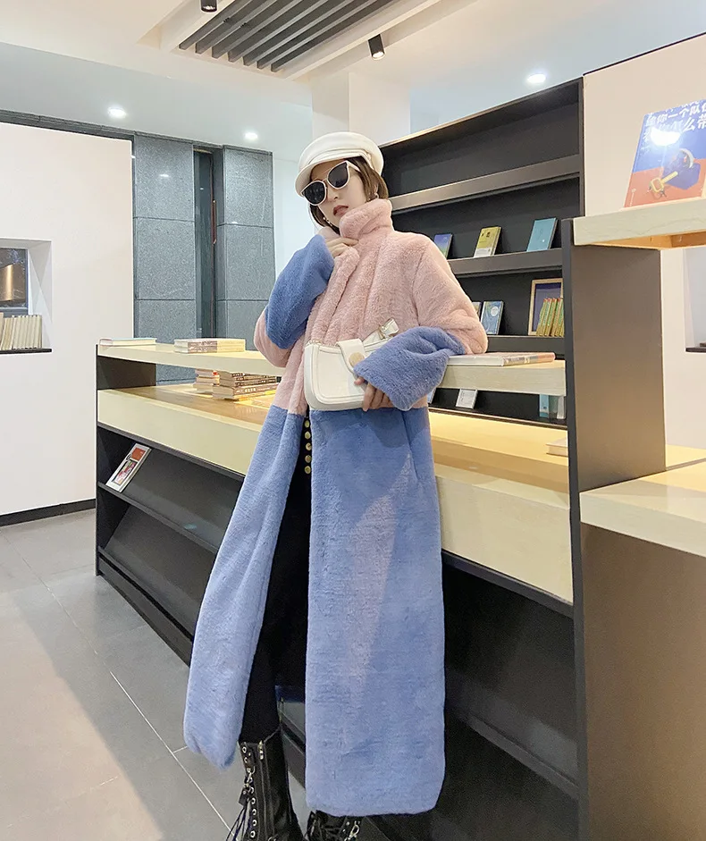 Женская длинная шуба из искусственного кроличьего меха, толстая теп...