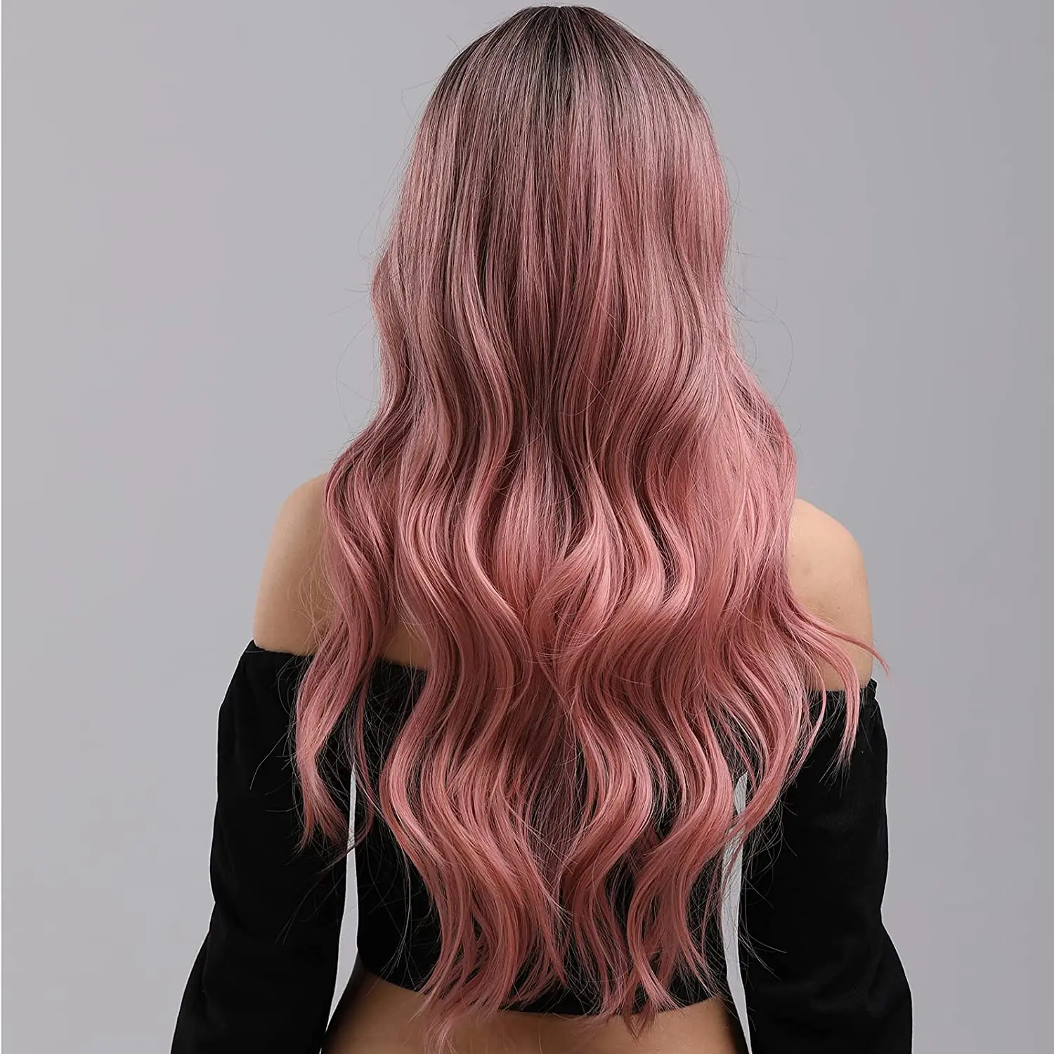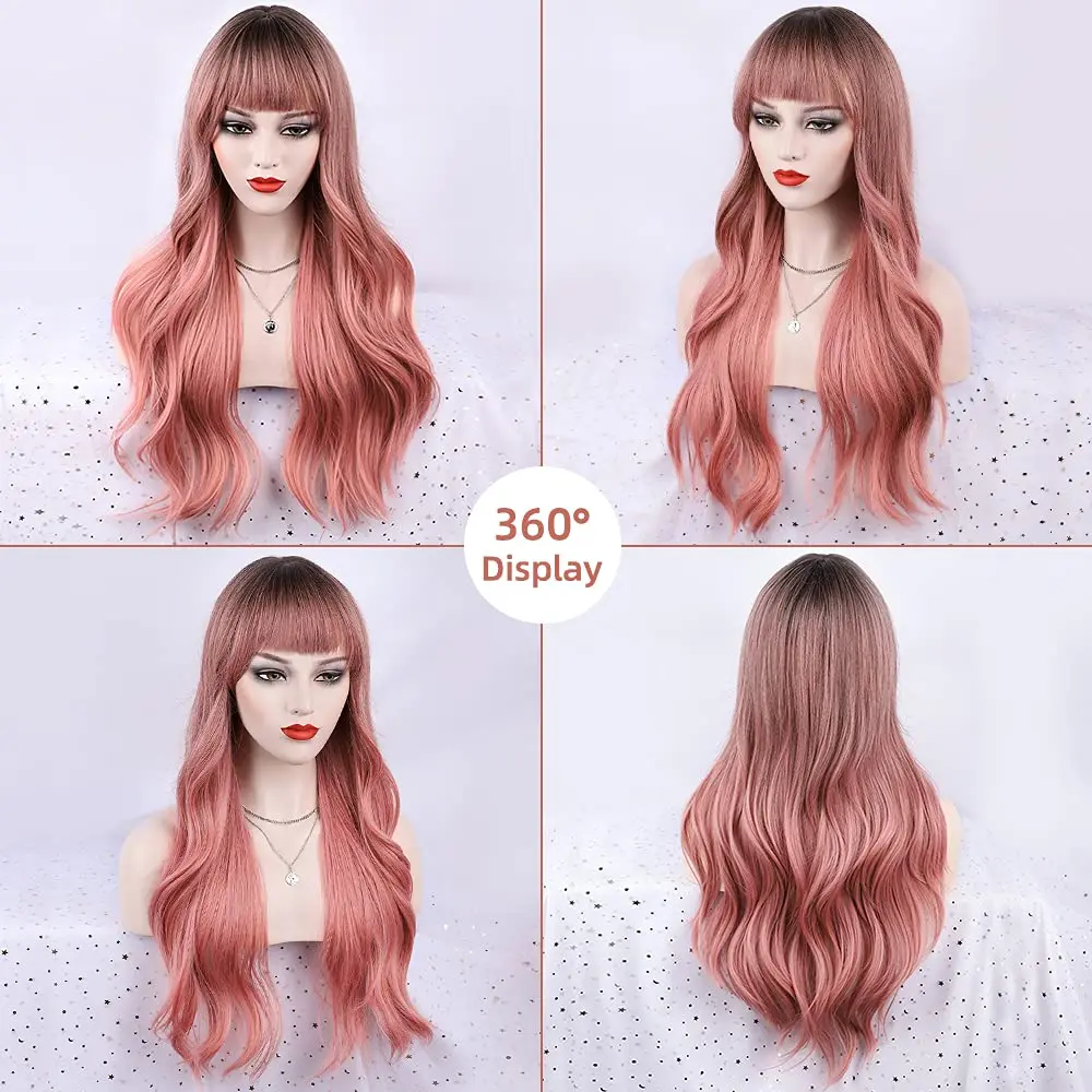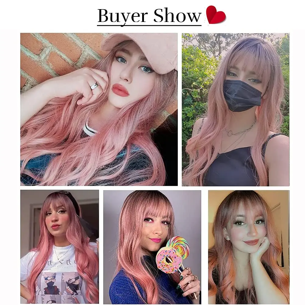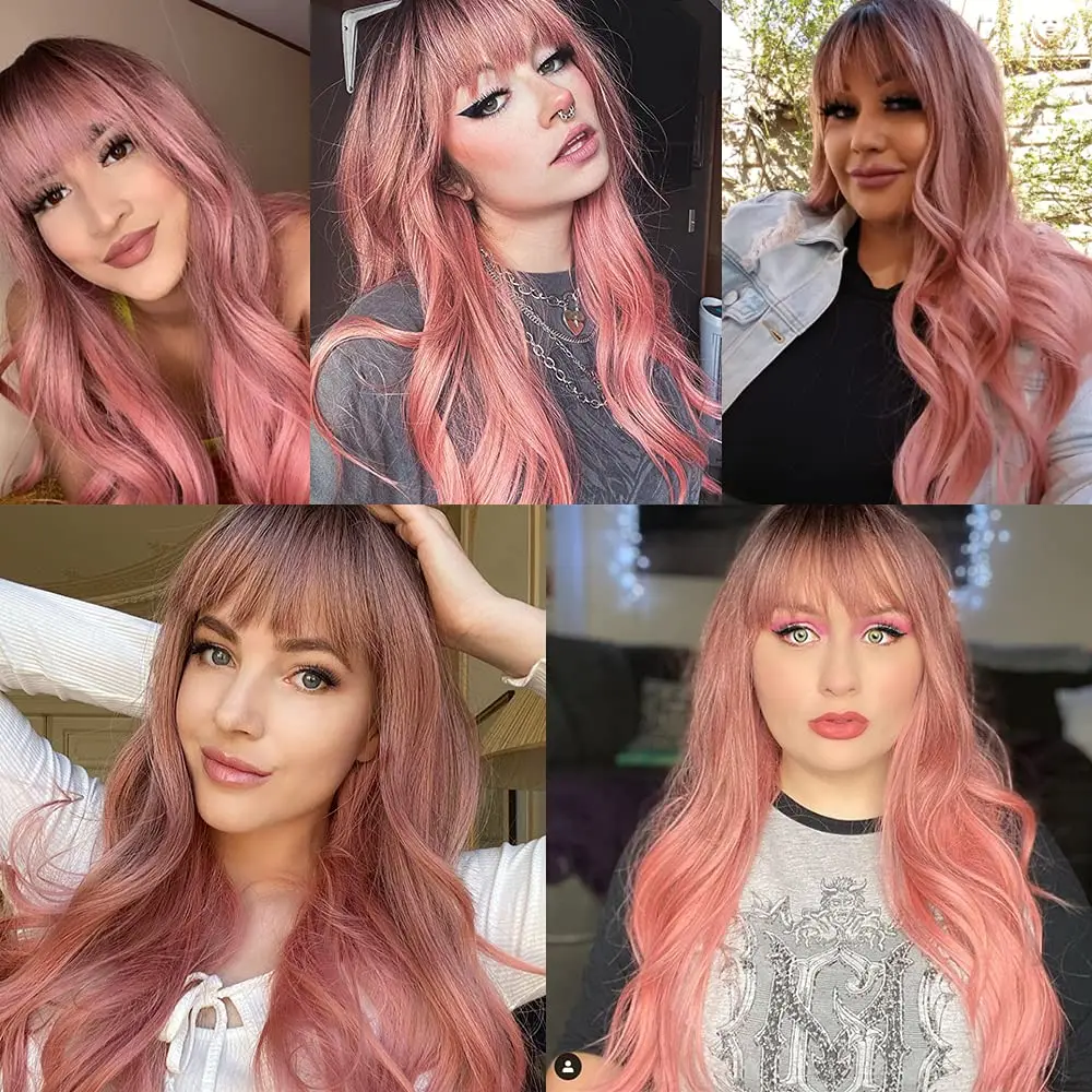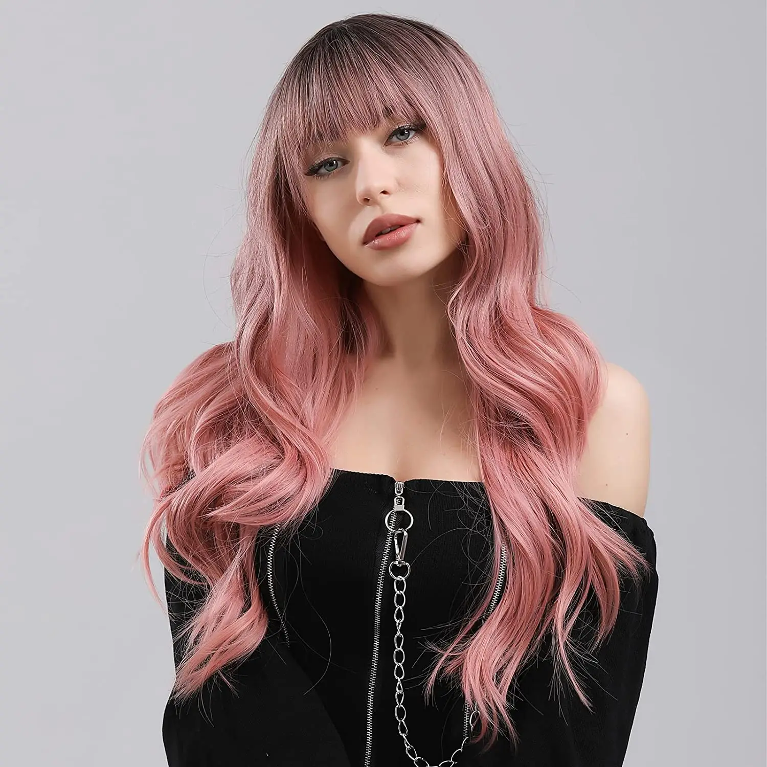 Парик розовый с челкой, парики, распродажа, жаропрочный синтетический парик, вьющиеся длинные розовые парики Омбре для женщин