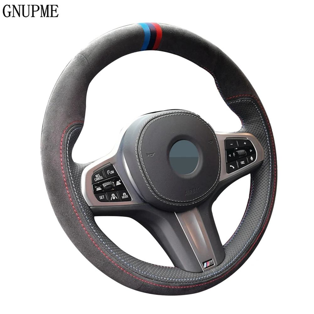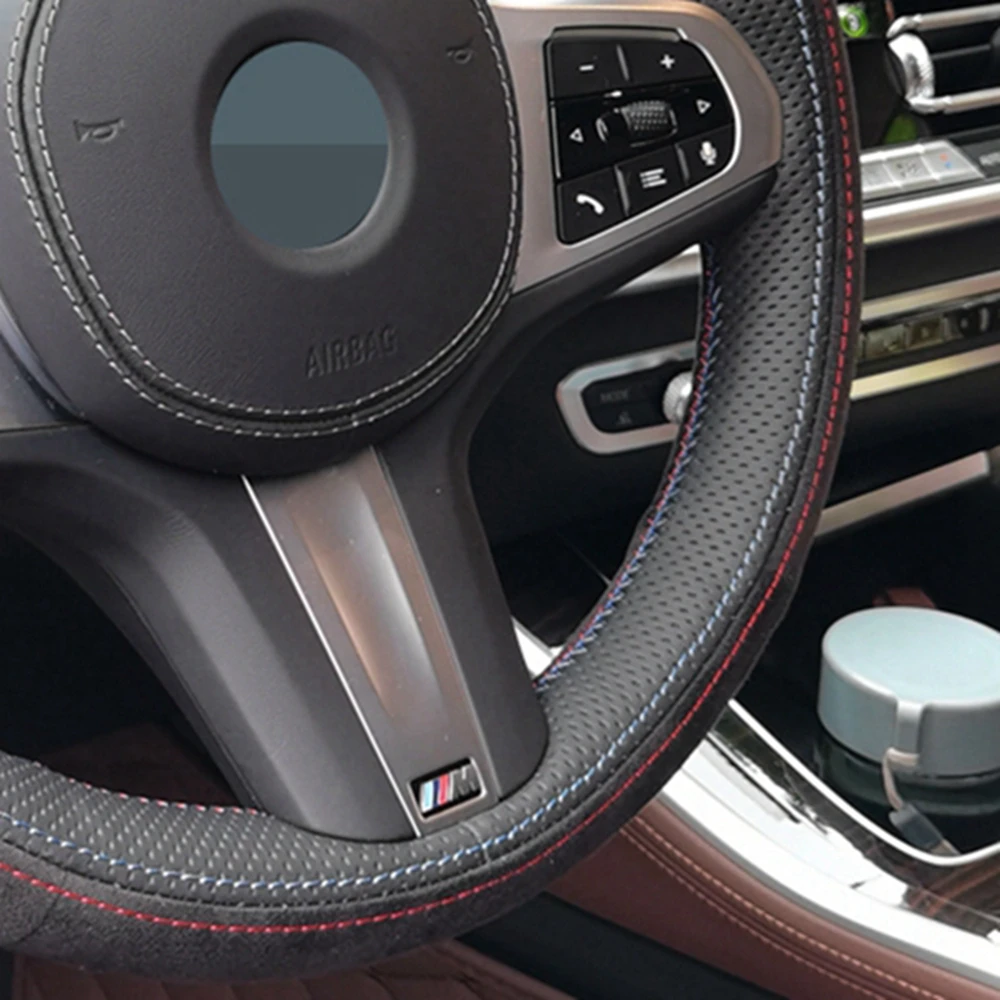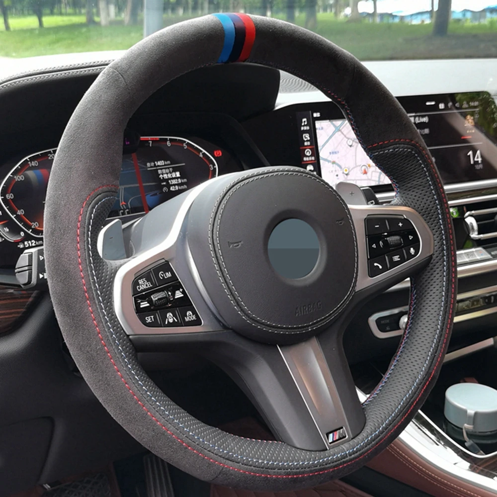 Сшитая вручную черная замша чехол рулевого колеса автомобиля для BM...