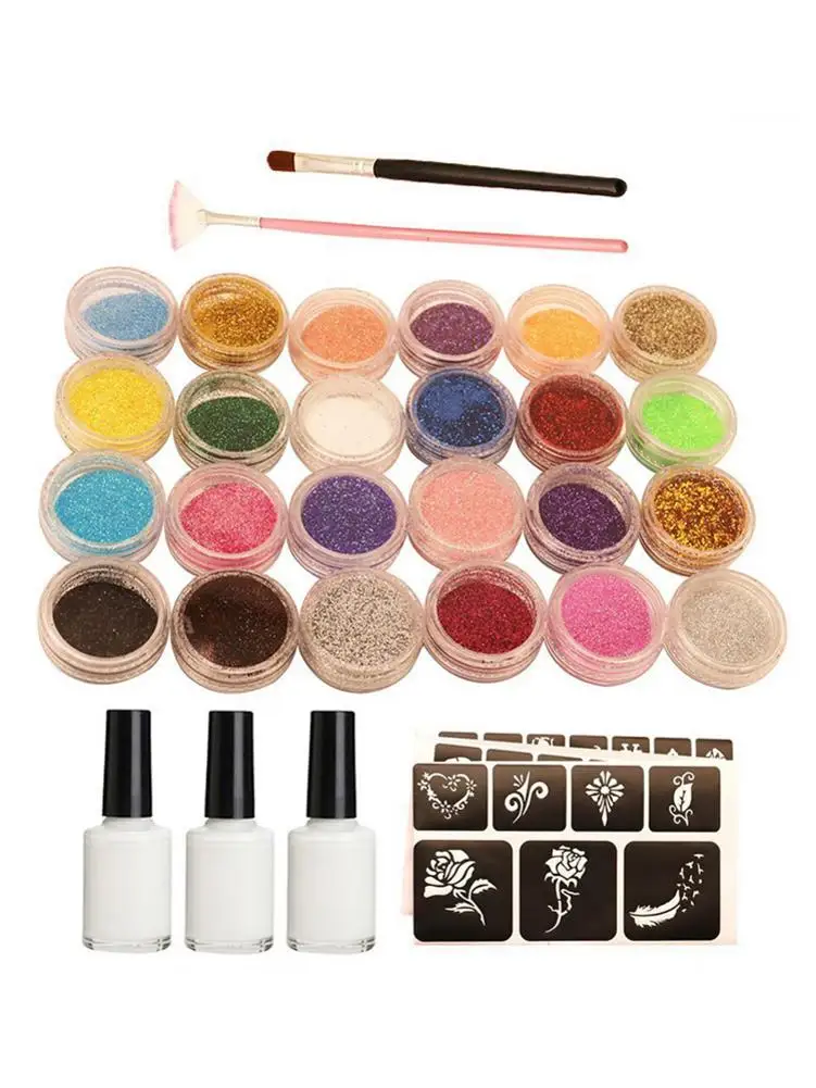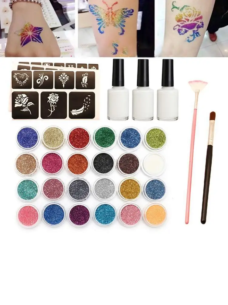 Наборы для татуировок с блестками, 24 цвета, 125 шаблонов, набор дл...