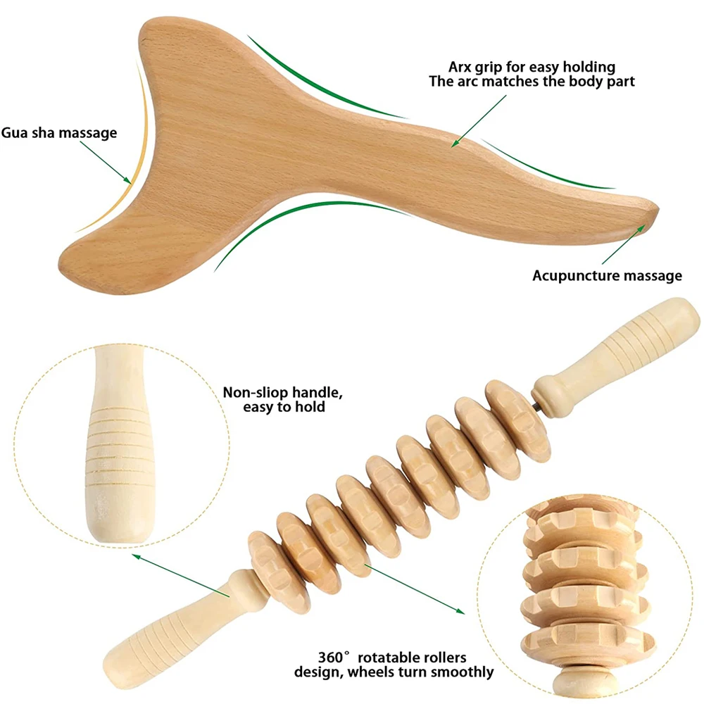 Инструменты для деревянной лимфатической дренажной терапии Gua Sha, массажные инструменты для деревянной терапии Machomby, ручная антицеллюлитная мамеротерапия, 2 шт.компл.