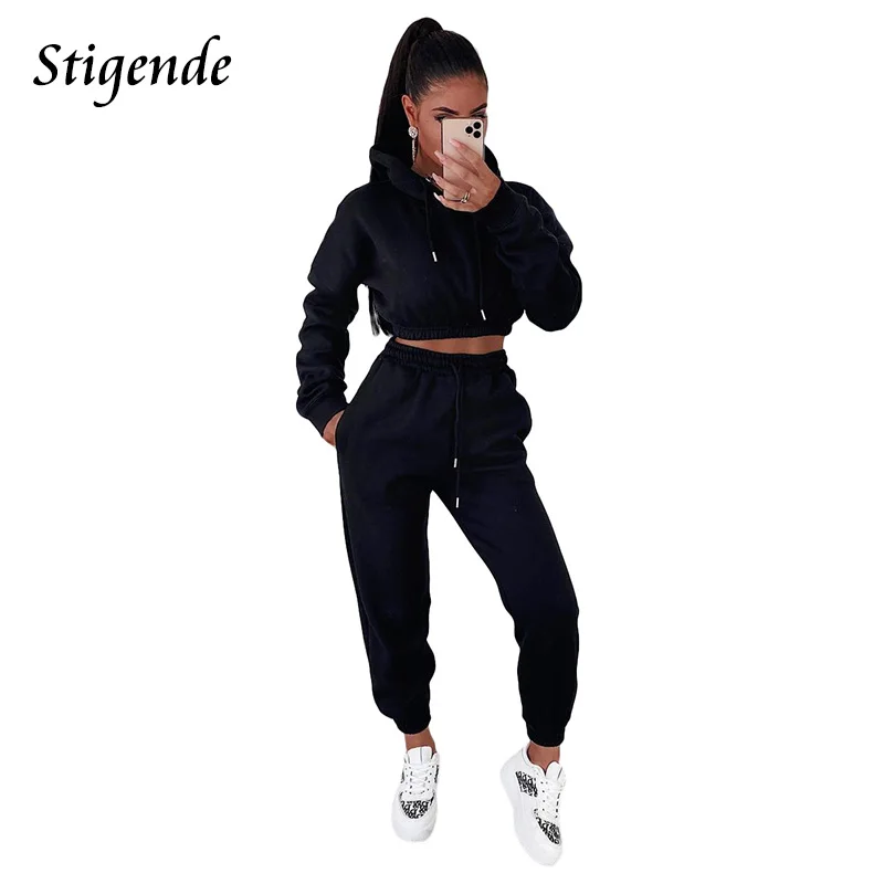 Женский спортивный костюм-двойка с капюшоном, с эластичным поясом