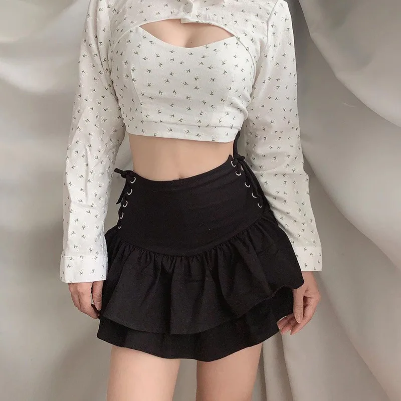 Женская плиссированная мини-юбка с завышенной талией, трапециевидная юбка в готическом стиле с завязками-крестиками
