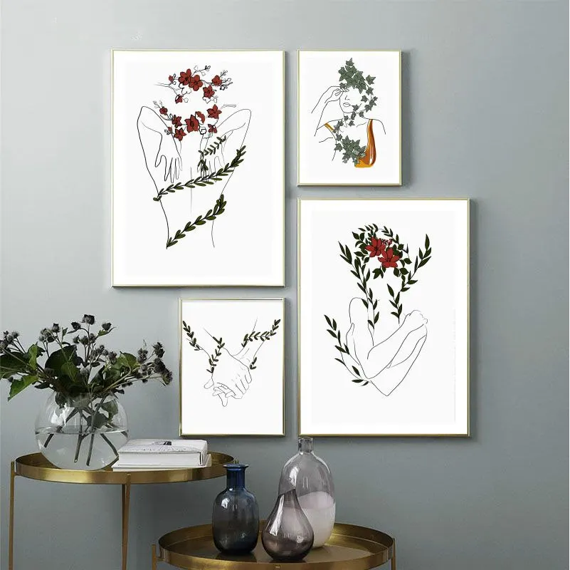 Абстрактная линия, рисование на холсте, Минималистичная картина, Скандинавская Настенная картина, домашний декор, плакаты с зеленой лозой для гостиной