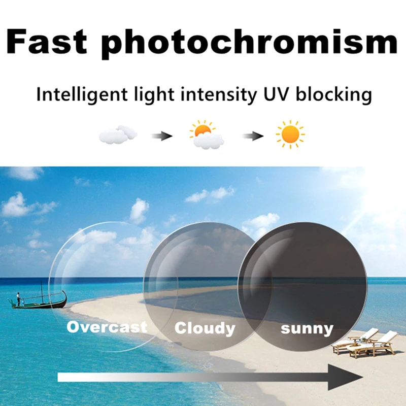 Фотохромные линзы также называют светильник-чувствительной линзы ". Стеклянные линзы добавляют Серебристые галогенные, но в настоящее время являются основным направлением фотохромные линзы из смолы, добавляя spiro и другие химические вещества в линзы из акриловой смолы, так что оригинальные бесцветные и прозрачные линзы, яркий светильник станет цветными линзами для защиты, поэтому подходит для использования в помещении и на улице. Фотохромные линзы, оптическое стекло, содержащее Серебристые галогенные микрокристаллы, фотохропия, обратимая реакция в соответствии с принципом, в светильник от солнца и ультрафиолетовое излучение переменная темная, полностью поглощает Ультрафиолет и видимый светильник, поглощающий нейтральный; обратно в темное время суток, может восстановить бесцветную прозрачность. Фотохромными линзами в основном используются в под открытым небом поля, снежные поля и крытый светильник источников, таким образом, чтобы предотвратить от солнца светильник и ультрафиолетовый светильник от повреждений в глаза.