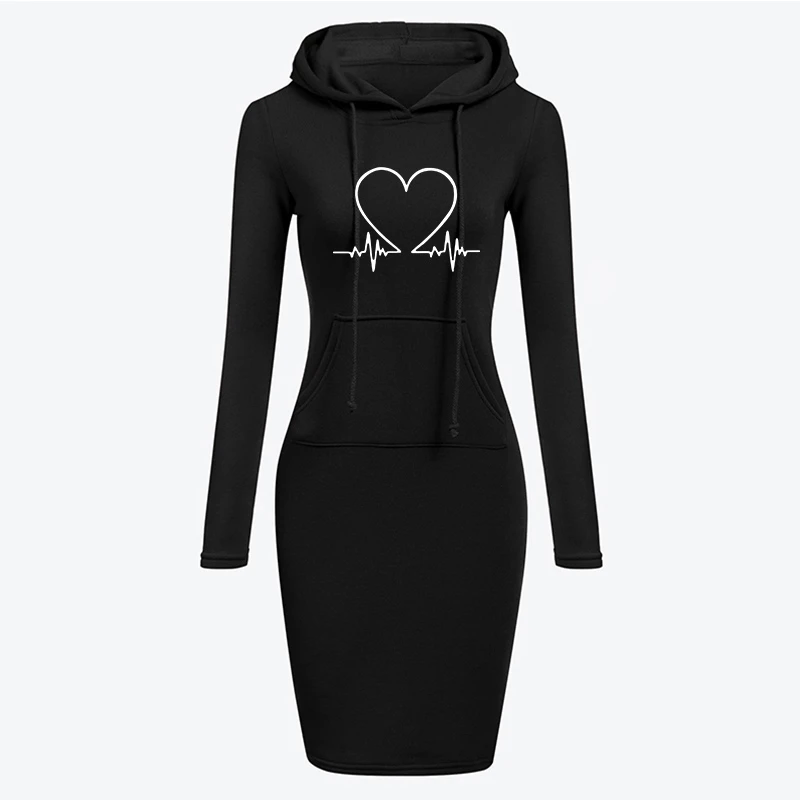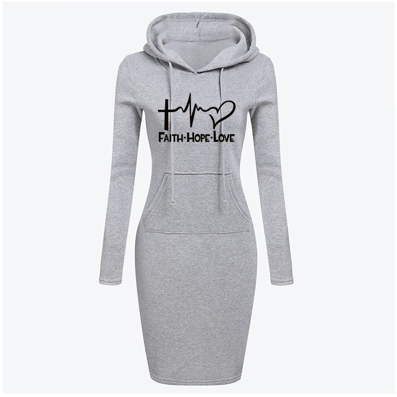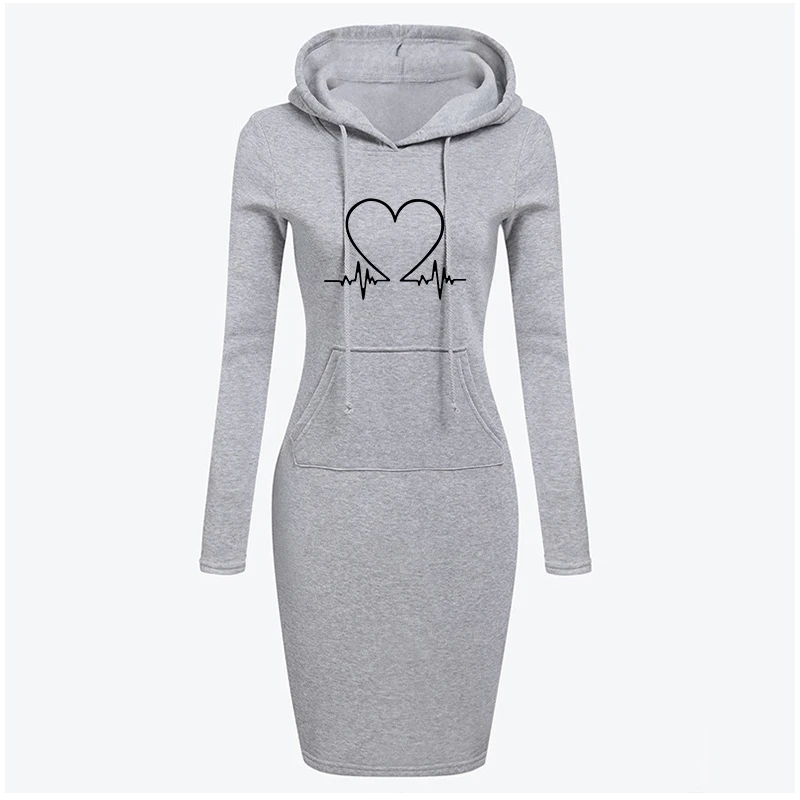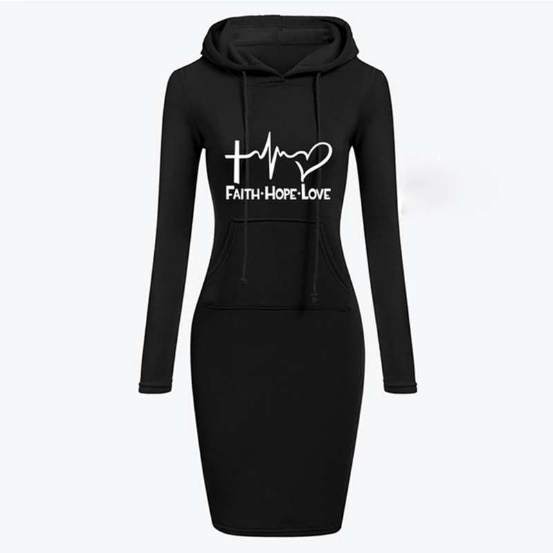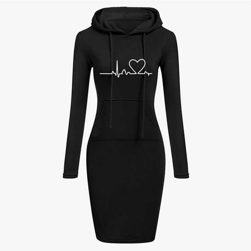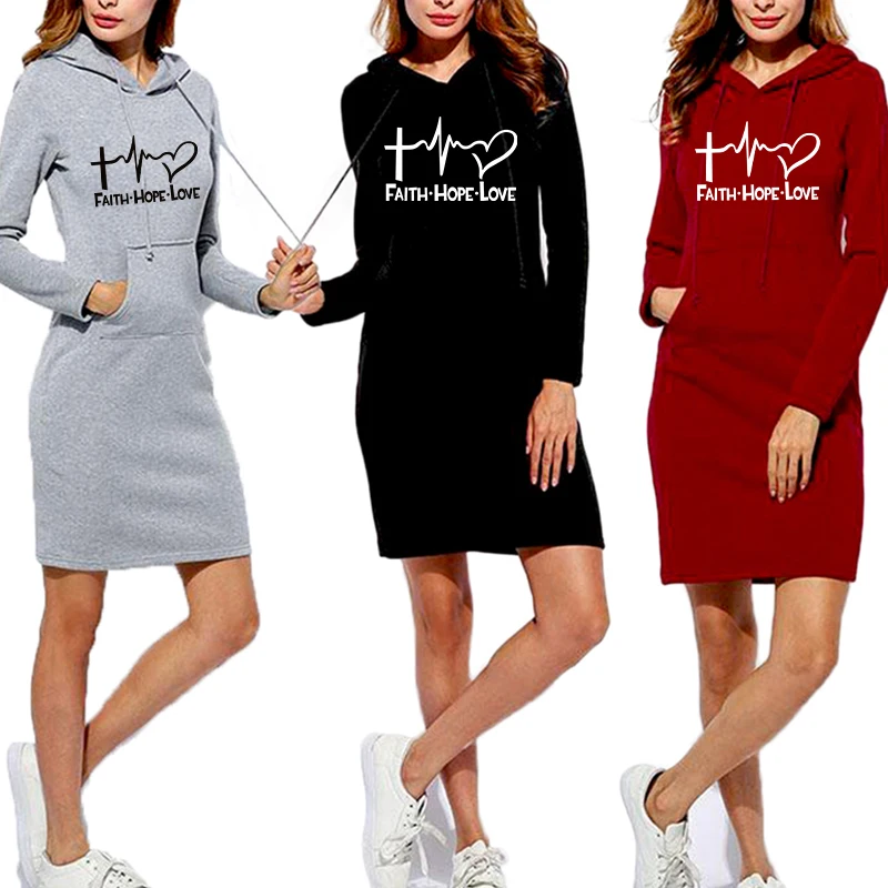 Осенне-зимнее платье с капюшоном для женщин, женская толстовка с ка...