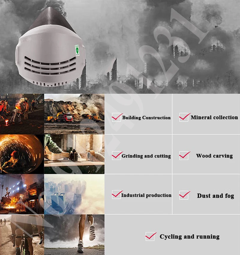 -Легче дышать и удобно носить.-Подходит для всех видов форм и не добавит давления на ваше лицо.-Высокоэластичная подвесная повязка на голову, нескользящая и прочная.-Предназначен для предотвращения нежирных частиц, дымки, PM2.5, химических газов и других твердых частиц.-Отлично подходит для химической обработки, сколов, покраски, очистки, шлифования, обработки, шлифовки, пилинга, сварки, строительства, общего производства и т. д.Характеристики:Материал: резина/силиконПосылка включает в себя:Пылезащитная маскаФильтр