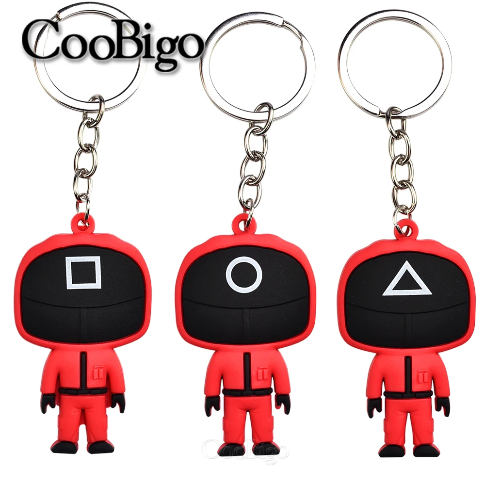 Брелок с подвеской в виде 3d-фигурок из игры кальмар, маски, аксесс...