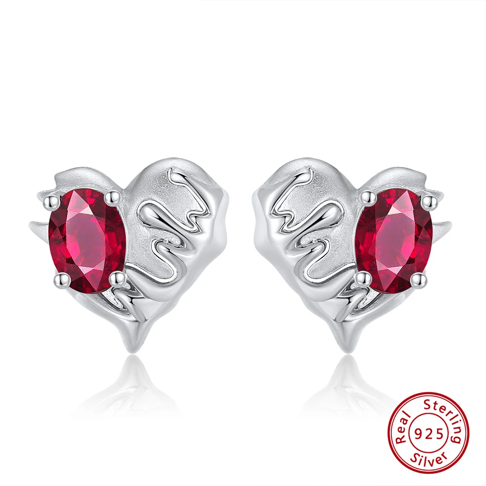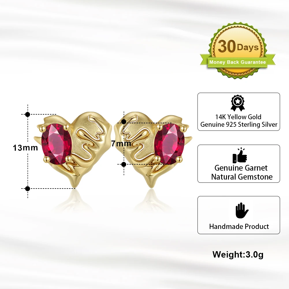 Женские серьги-гвоздики из серебра 925 пробы с натуральным гранатом