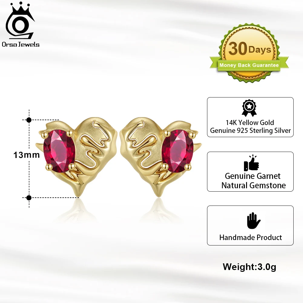 Женские серьги-гвоздики ORSA JEWELS, серьги-гвоздики из натурального граната, серебро 925 пробы, ювелирное изделие ручной работы, GME07
