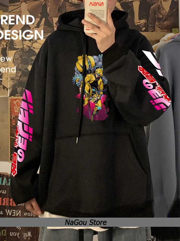 Толстовка мужская оверсайз с аниме принтом, свитшот с принтом невероятных приключений Джоджо в стиле Харадзюку, модная повседневная Уличная одежда