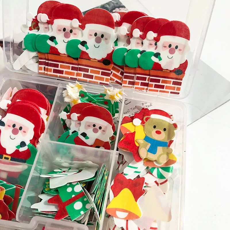 Смешанные съедобные клейкие вафли в виде мультяшного Санты, 100 шт., рисовая бумага, топперы для тортов и капкейков, декоративные рождественские товары для украшения тортов