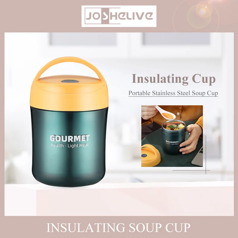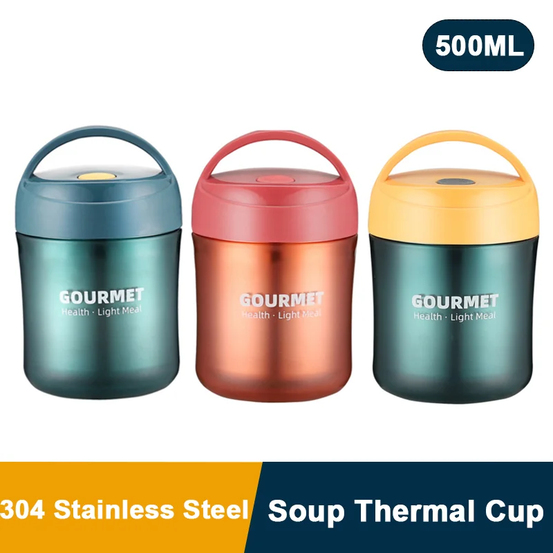 Пищевой Термоизолированный контейнер из нержавеющей стали, 500 мл, портативный контейнер для завтрака, Ланчбокс, Герметичный Термос для супа, чашка, вакуумные фляжки