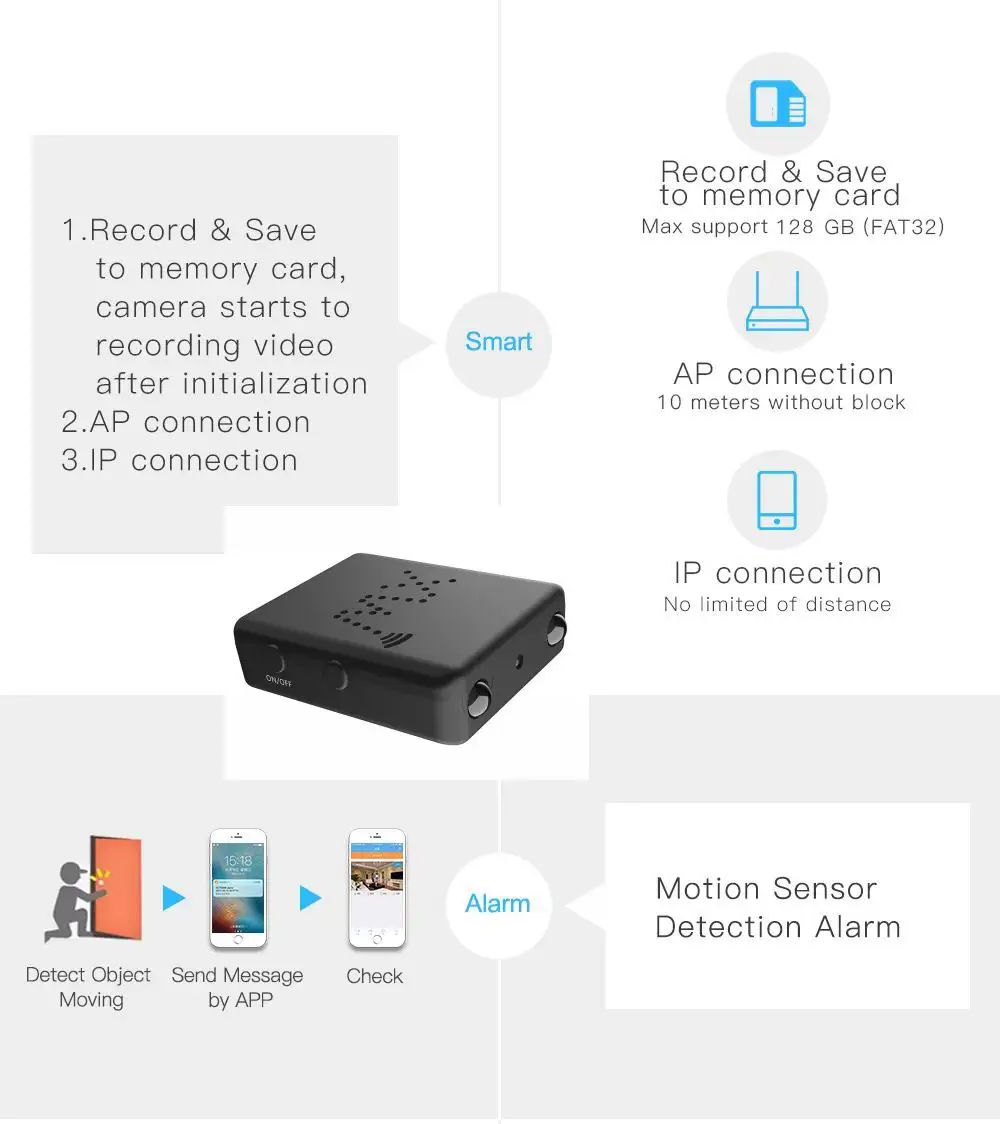 Мини-камера видеонаблюдения XD, Full HD, 4K1080P, Wi-Fi, ИК-подсвет...