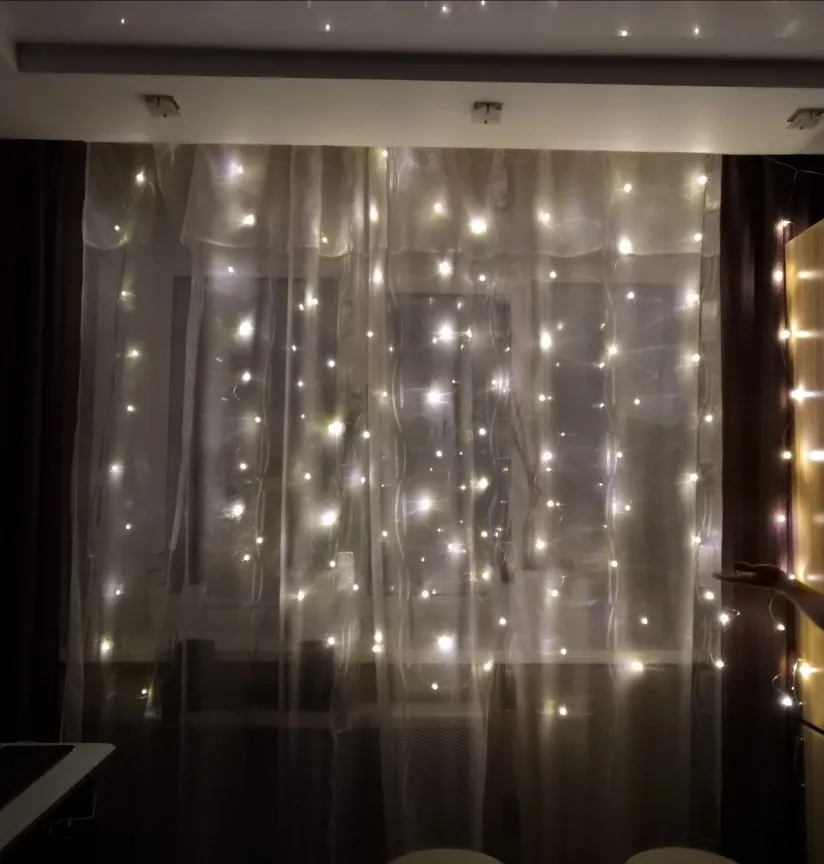 Гирлянда-занавеска, светодиодсветильник гирлянда, светильник Гирлянда-занавеска на окно, Рождественская гирлянда на окно, свадебное освещение, Декор