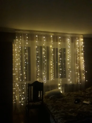 гирлянда пришла достаточно быстро. цвет больше белый, чем жёлтый. глаз радует все равно. единственный то ли минус то ли это придирка, при подвешенной гирлянде блок питания не достаёт до розетки, приходится придумывать какие нибудь удлинители. за такие деньги это конечно хорошо