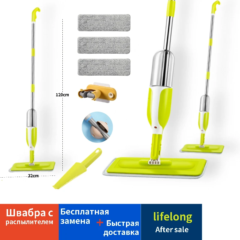 Швабра с распылителем, плоский швабра с многоразовыми насадками из ...