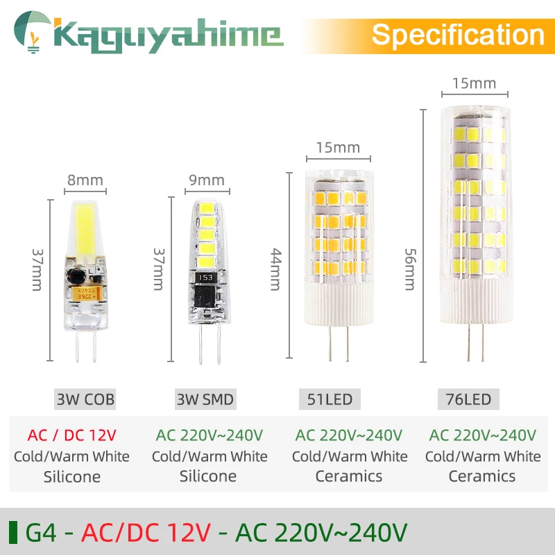 Kaguyahime 5 шт.лот LED COB G4 G9 E14 диммируемая лампа ACDC 12 В 3 Вт 5 Вт 6 Вт 220 В G4 G9 лампочка для люстры заменить галогенную лампу