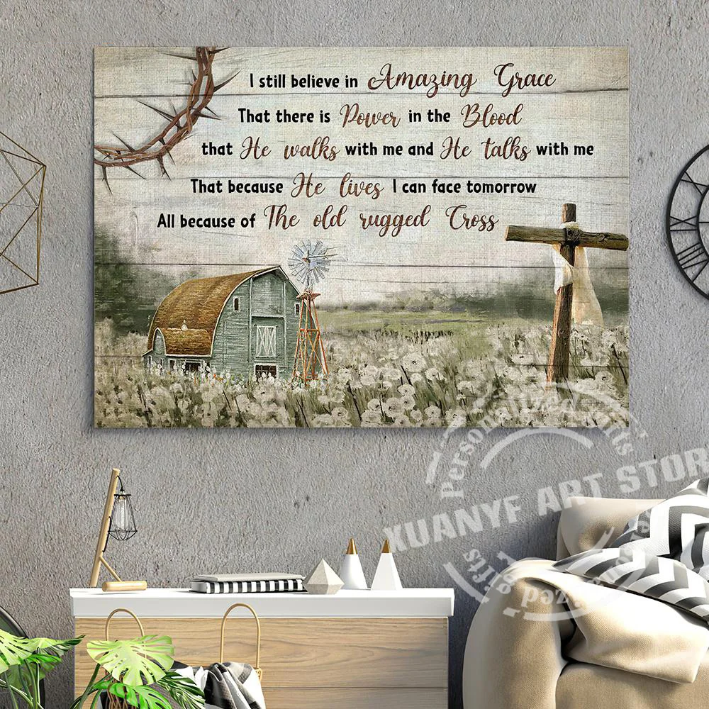 Крест Иисуса Картина на холсте плакаты и принты спокойная ферма я все еще верю в удивительное изящное окно рамка пейзаж настенное искусство