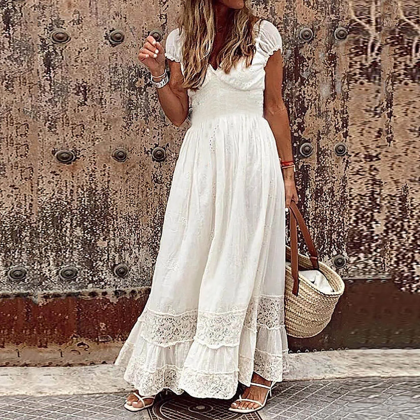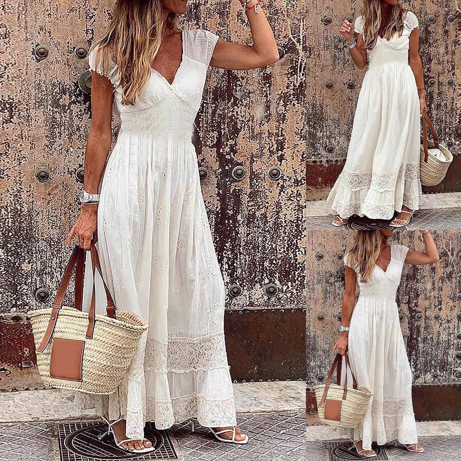 Женское длинное платье в стиле бохо, элегантное привлекательное белое платье макси для подружки невесты с высокой талией, Пляжное праздничное платье, лето