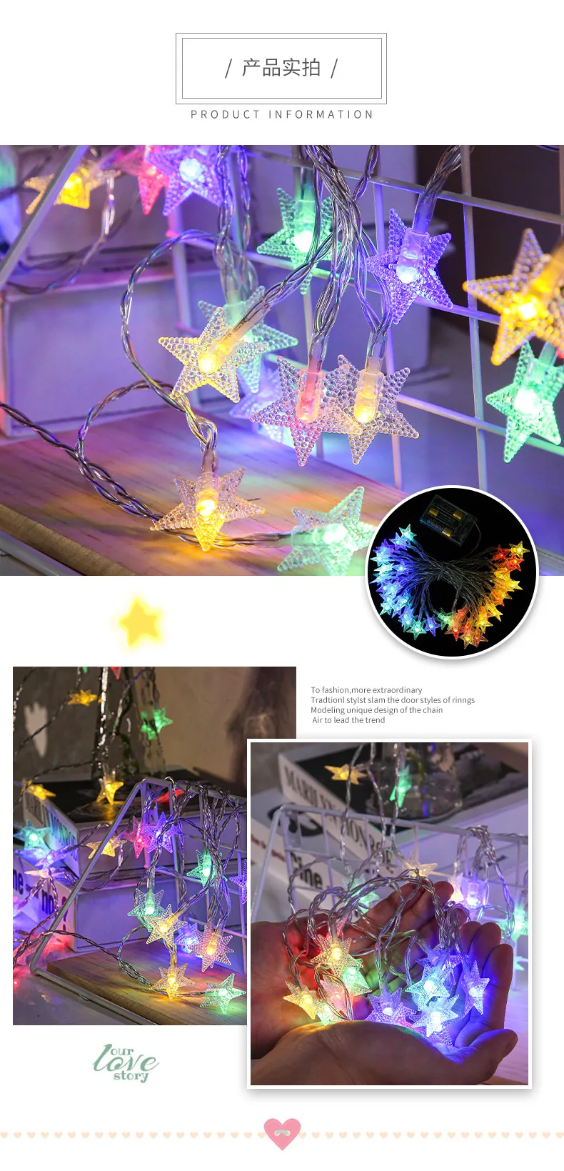 Светодиодный ная гирлянда со звездами, сказочные огни, праздничные ...