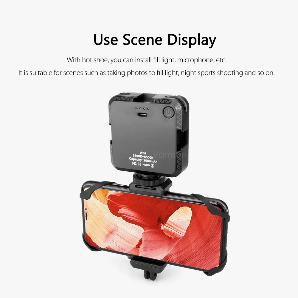 1. Винтовое крепление совместимо со стандартным штативом 1/4 "-20/моноподом.2. Общая нить в нижней части может быть подключена к любым обычным фитингам.Например: штатив/монопод, повязка на голову, нагрудный ремень, ремешок на руку и т. Д.3. Простота установки, обеспечивает более безопасную и стабильную поддержку вашего мобильный телефон.4. С портом горячего башмака, вы можете установить заполняющий светильник, микрофон и т. д.Он подходит для таких сцен, как фотографирование, чтобы заполнить светильник, ночную спортивную съемку и так далее.