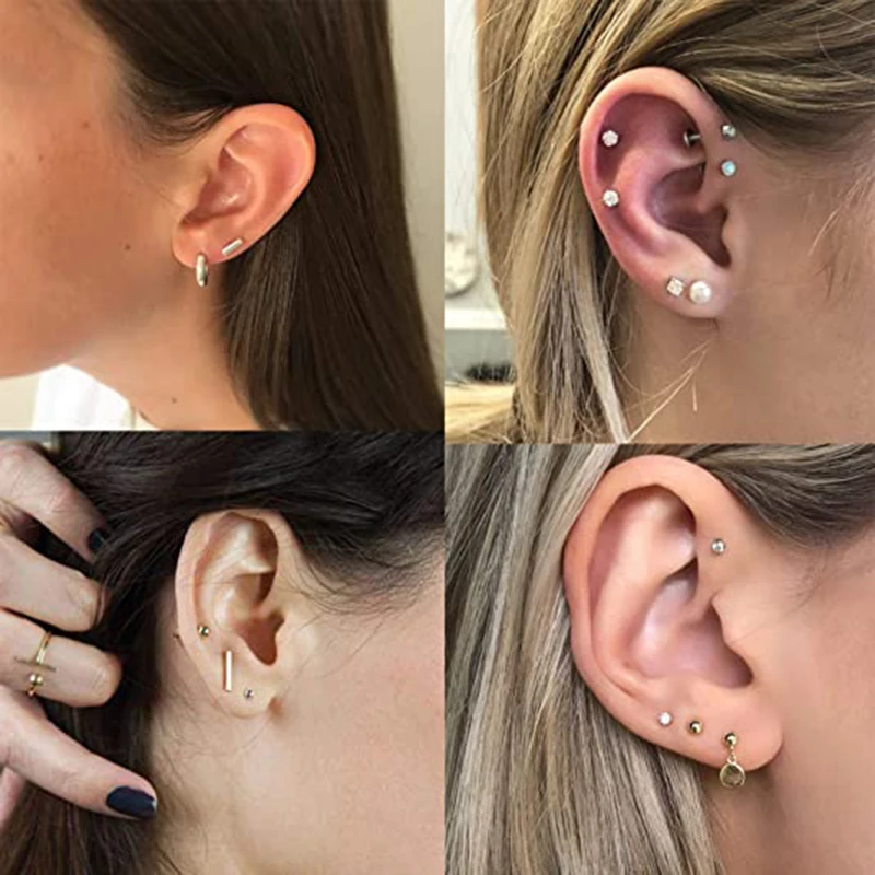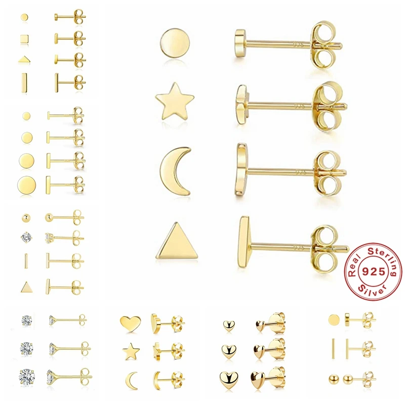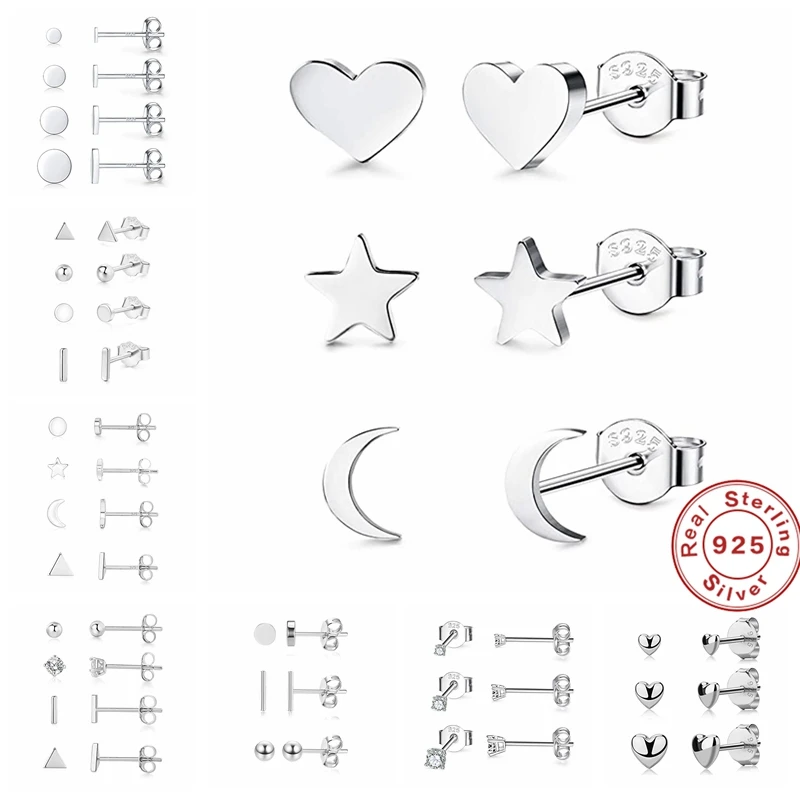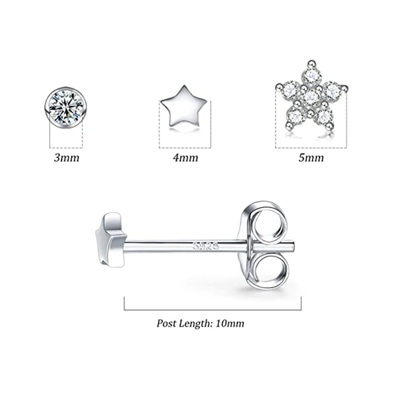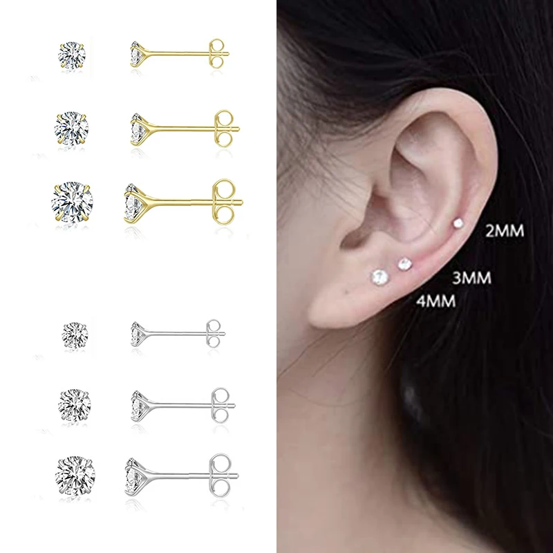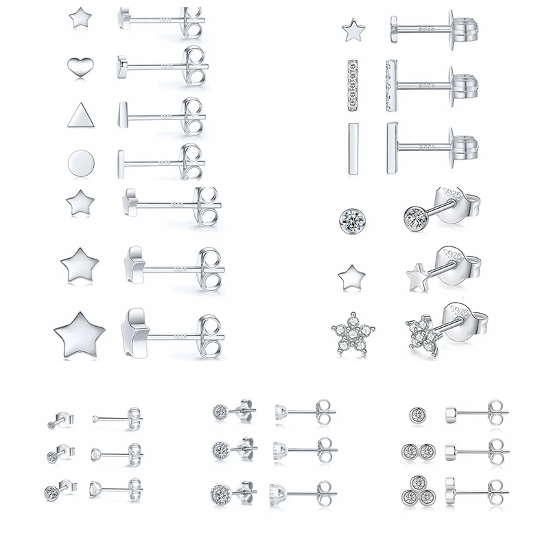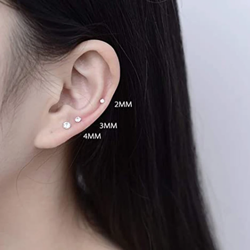 Серьги-гвоздики женские из серебра 925 пробы с фианитом, 34 шт.