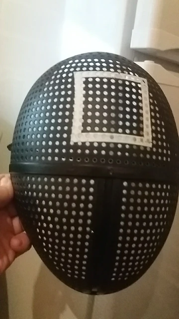 Маска из игры в Кальмаре изготовлена из ударопрочного АБС-пластика, который позволит носить ее очень долго, не беспокоясь о том, что она сломается.