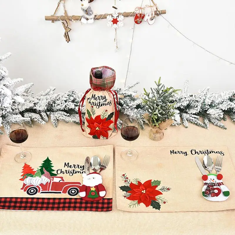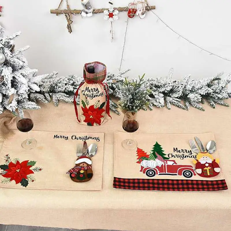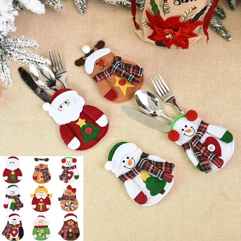 Рождественская Крышка для столовых приборов, мультяшная Крышка для столовых приборов со снеговиком, крышка для столовых приборов с Санта-Клаусом, милая Крышка для столовых приборов в рождественском стиле
