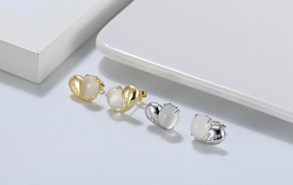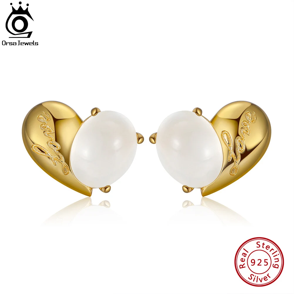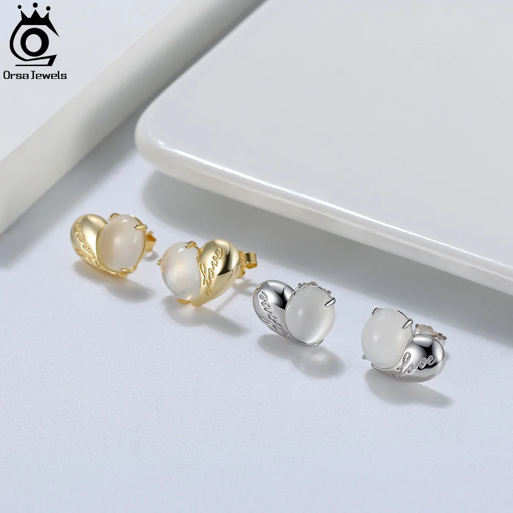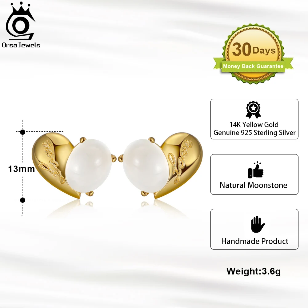ORSA JEWELS 100% натуральный лунный камень сердце серьги гвоздики овальной формы 925 драгоценные камни из стерлингового серебра серьги ювелирные изделия для женщин GME08