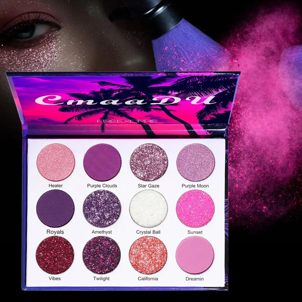 Палитра теней для век, 12 цветов, блестящие мерцающие тени для век,...