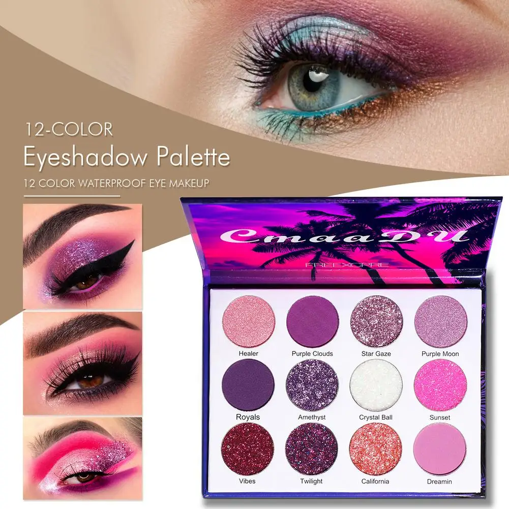 Блестящие матовые тени для век Палитра 12 цветов водонепроницаемый макияж для глаз 12 цветов мерцающие тени для век макияж матовый и металлический водонепроницаемый
