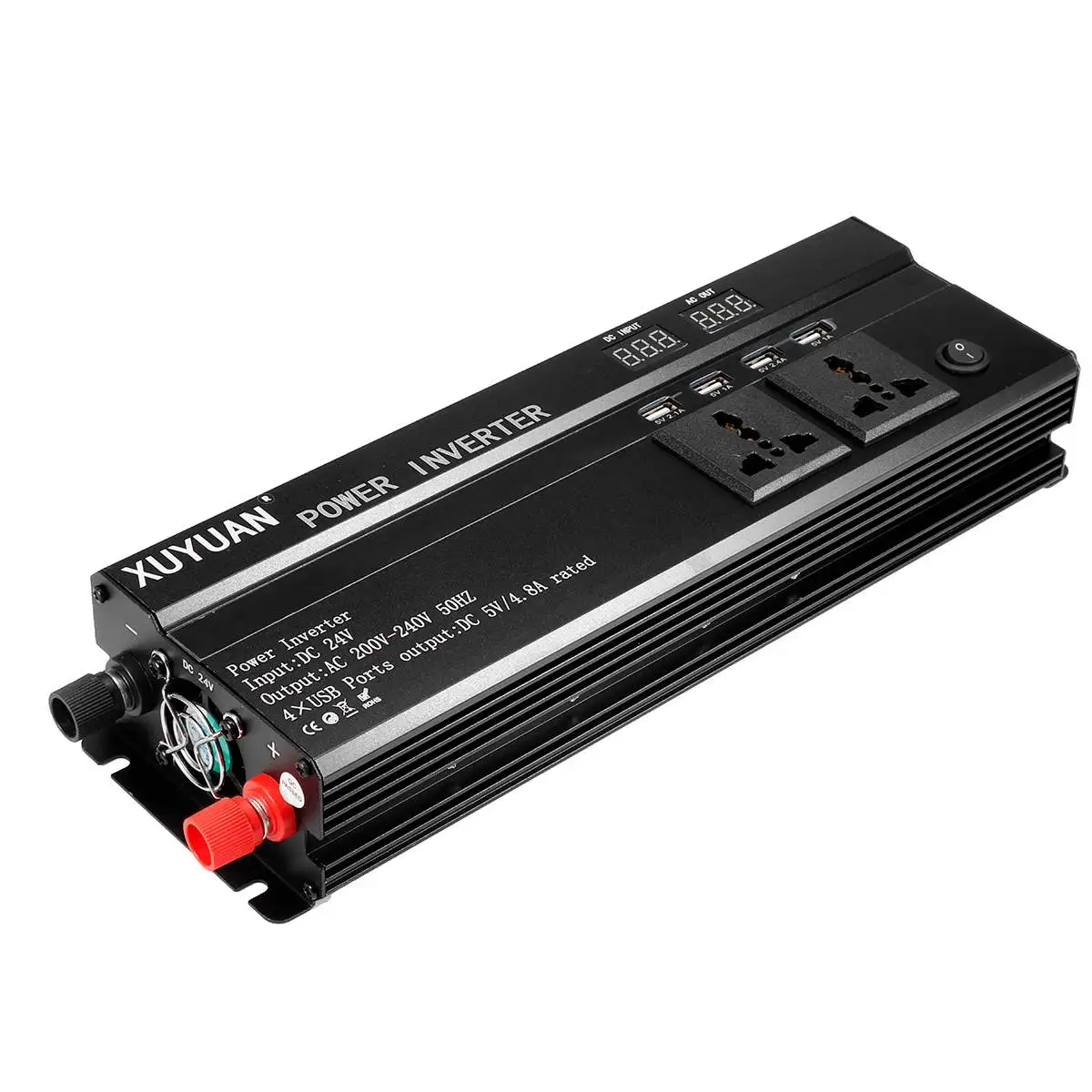 Характеристика:-Инвертор может преобразовывать DC12 / 24V в AC 110V/220V.-Интеллектуальный цифровой дисплей: мониторинг входного напряжения и выходного напряжения в режиме реального времени.-Встроенный вентилятор охлаждения с низким уровнем шума.-Usb-интерфейс для зарядки.-Положительный и отрицательный полюсный терминал.-Поставляется с парой кабеля аккумулятора, удобной в использовании.-Ручной выключатель инвертора.-12 В, как правило, для автомобилей, 24 В для грузовиков.-Идеально подходит для использования телевизора, dvd-плеера и других бытовых приборов в вашем автомобиле через наш инвертор.-Предметы первой необходимости для ваших дорожных поездок, каникул, прогулок на открытом воздухе, аварийных комплектов и многого другого.Спецификация:-Цвет: черный-Материал: алюминиевый сплав-Тип разъема: Универсальная Розетка-Мощность скорости: 2000 Вт-Мощность пиков: 6000 Вт-Входное напряжение: 12 В/24 В-Выходное напряжение: 100-130 В 60 Гц/200-240 В 50 Гц-Выход USB: DC5V 4.8A-Форма выходного сигнала: модифицированная Синусоидальная волнаПосылка включает в себя:1x инвертор питания1 пара кабеля Batery1x кабель прикуривателя1x Руководство пользователяПримечание:1. Замеры сделаны вручную, поэтому возможны 0,5-1 см из-за различий в связи с тем, что измерения выполнены вручную.2. В связи с использованием разных по светильник экране монитора фактический цвет товар точно такой же, как и цвет изделия на фото может быть s светильник ly отличается из-за характеристик монитора компьютера.