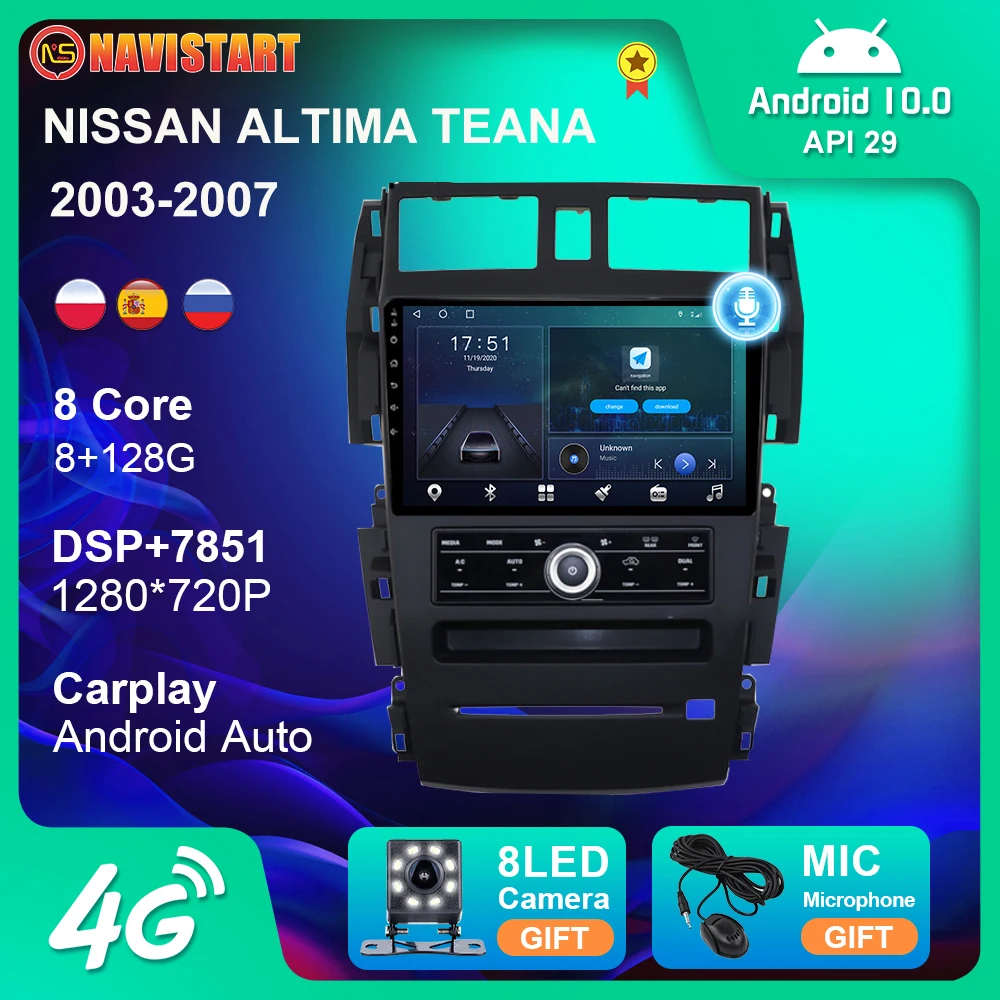 Автомобильный мультимедийный плеер Android 10 для NISSAN TEANA ALTIMA J31 2003-2007, автомобильное радио 4G, Wi-Fi, CarPlay, GPS-навигация, без DVD-плеера