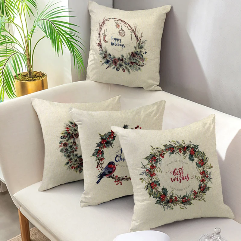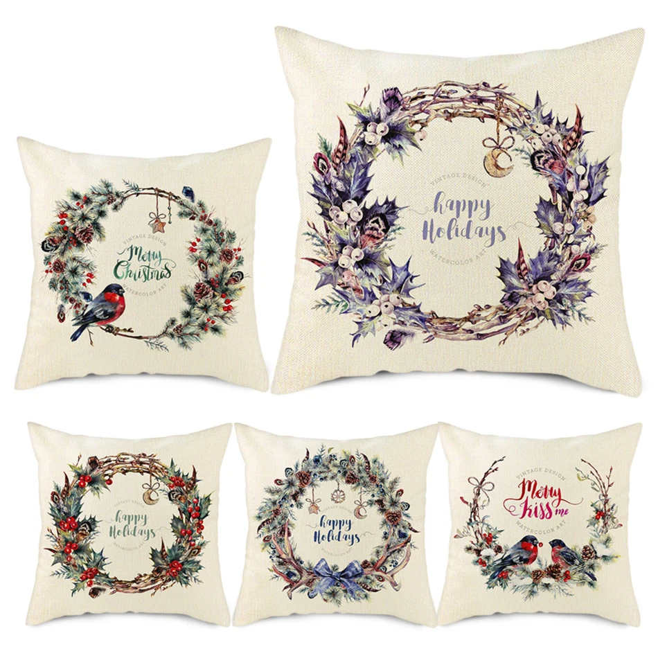 Винтажный Рождественский венок, Фото чехол для подушки, новогодвечерние ничные декоративные наволочки для домашнего дивана, стула, декоративные льняные наволочки для подушки