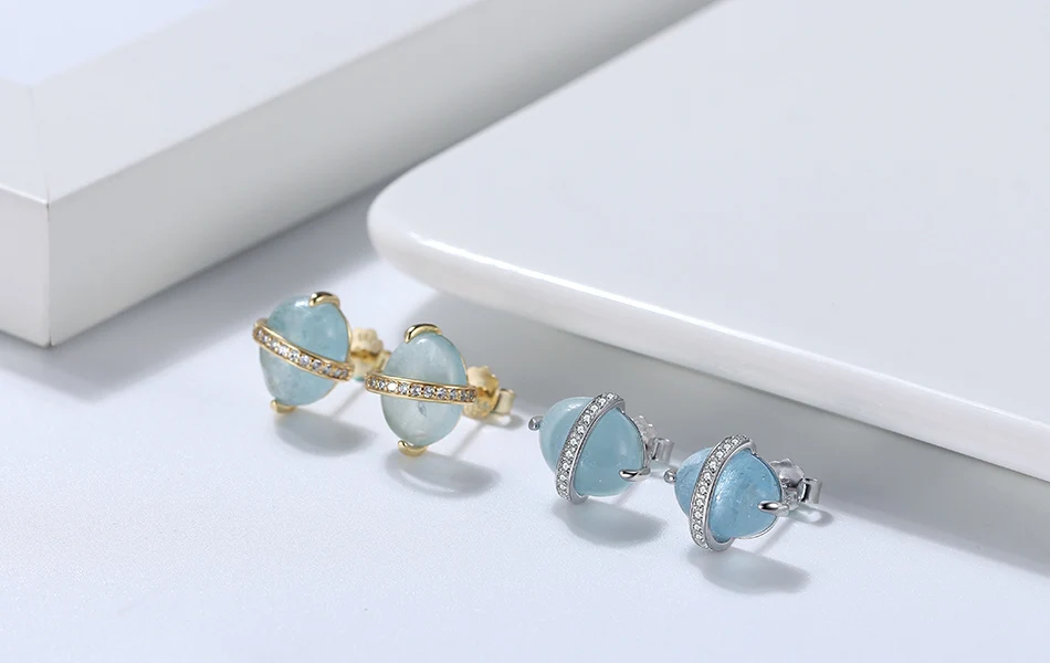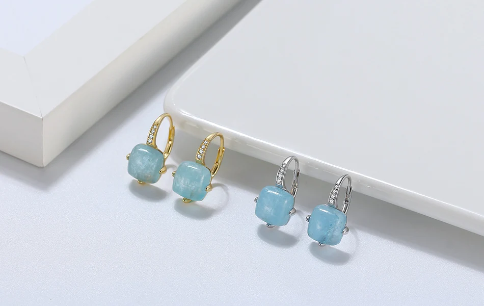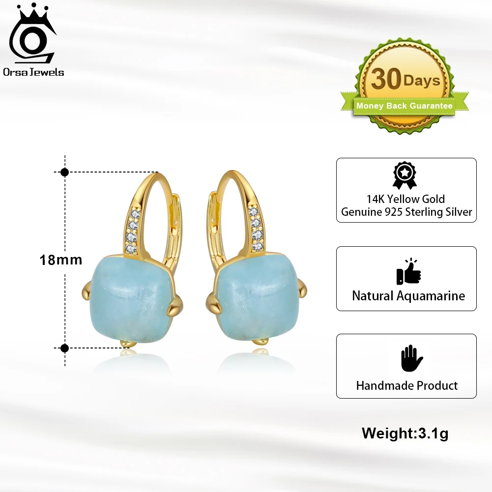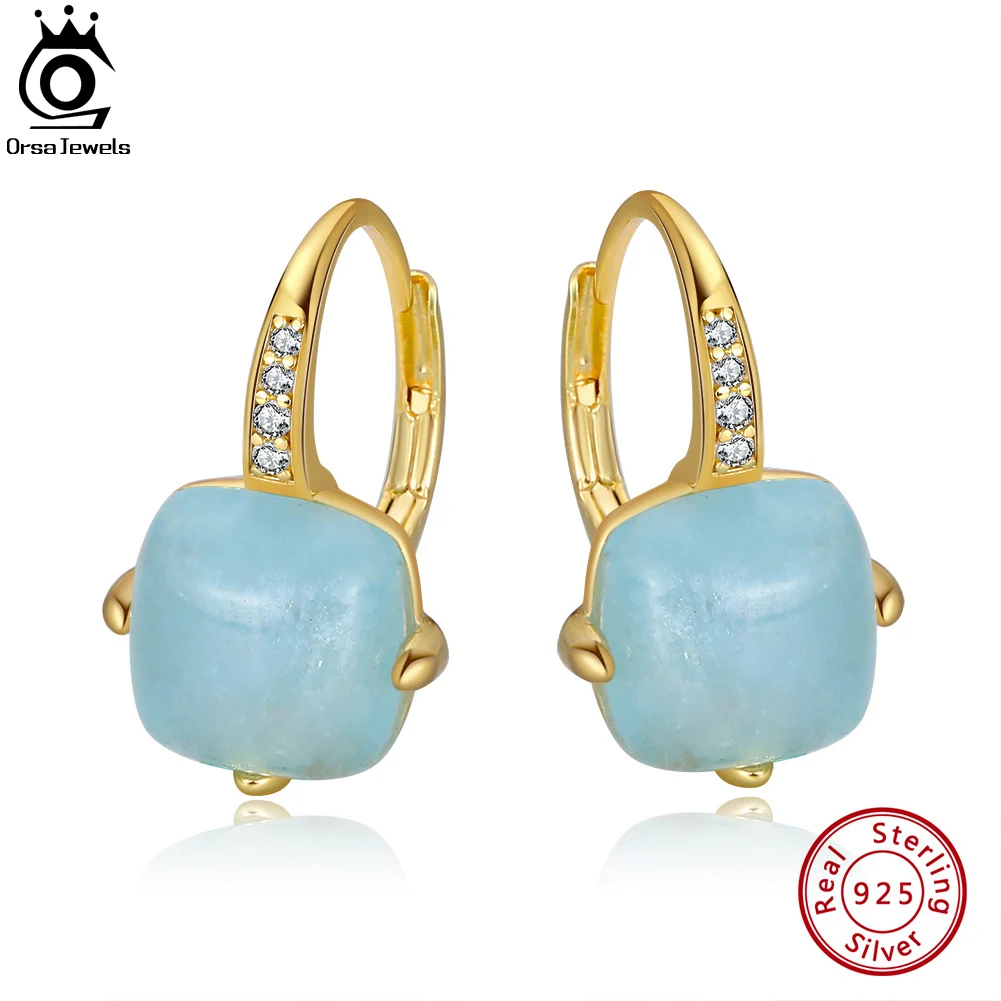 ORSA JEWELS модные натуральные подушечки, аквамарин, серебро 925 пробы, изящные серьги для женщин, невесты, ювелирные изделия, подарки GME09