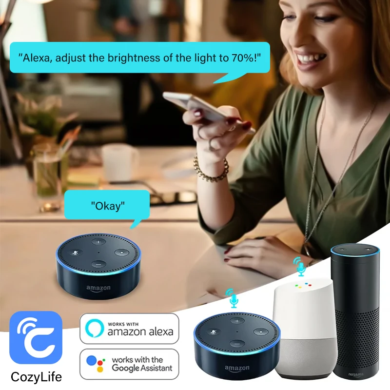 Простое Голосовое управление всеми лампами smart светильник с помощью интеграции с Amazon Alexa Echo или Google Home Assistant, это включает в себя включение/выключение, яркость. Ex, вы можете сказать, "Alexa переключает мой умный светильник на 50 процентов".
