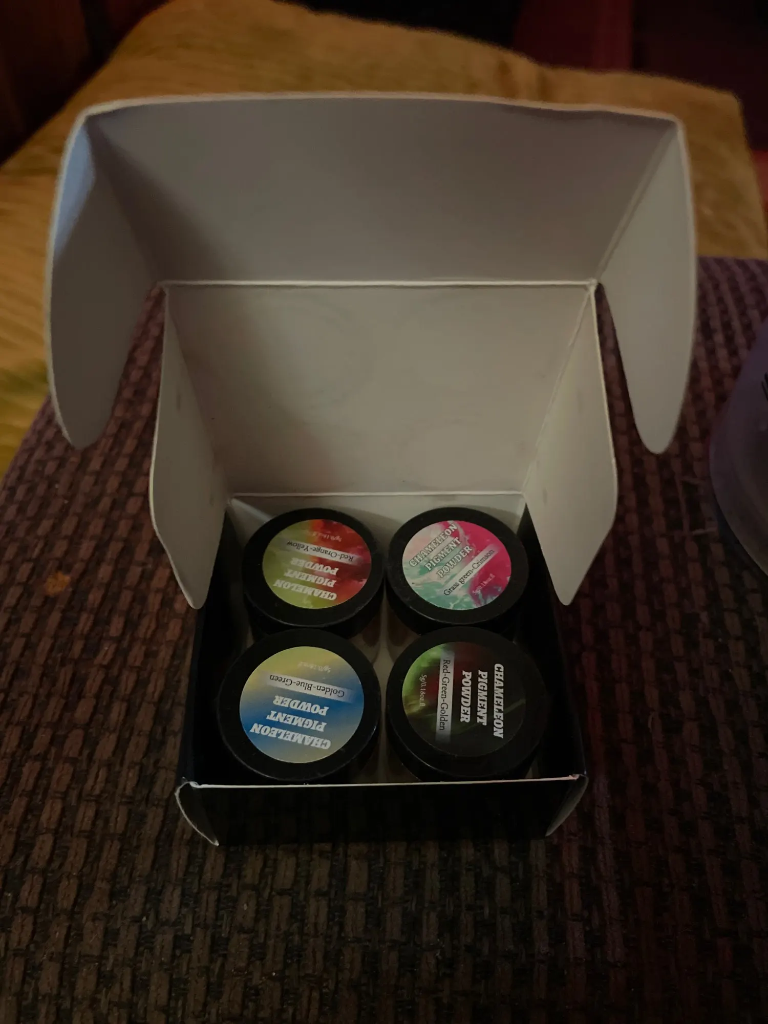3, 5 граммов Хамелеон порошок 4-цветный комплект 3: ослепительно коричневый, красный, светло-фиолетовый, фиолетовый, красный, светло-золотой, фиолетовый-сине-зеленый, пурпурно-синий, красный, светло-оранжевый