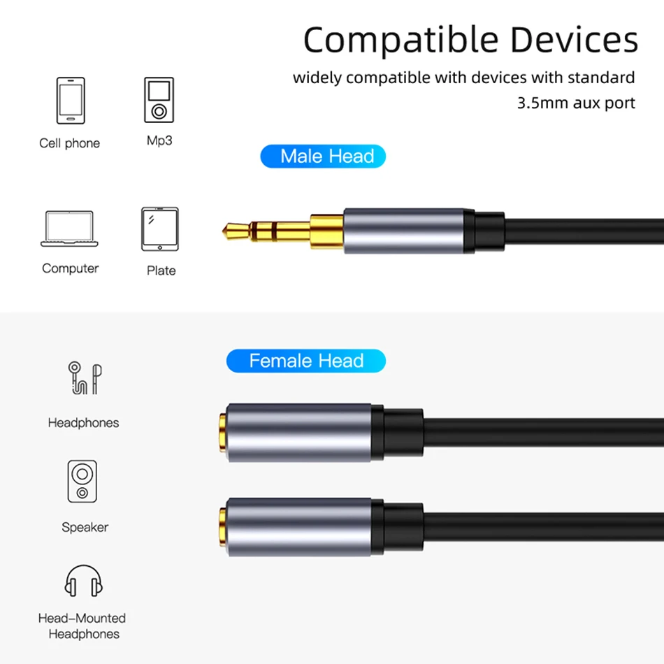 Наушников сплиттер адаптер для наушников аудио 3,5 мм до 2 Женский ...